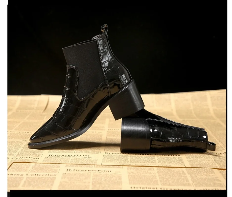 Женские плюшевые ботинки Челси на квадратном каблуке, из лаковой ко...