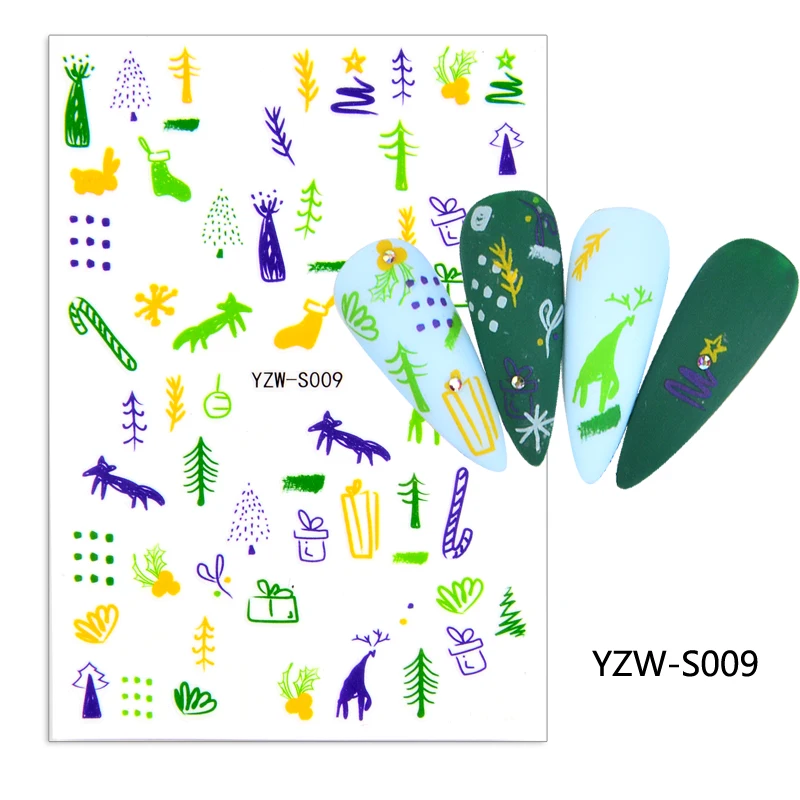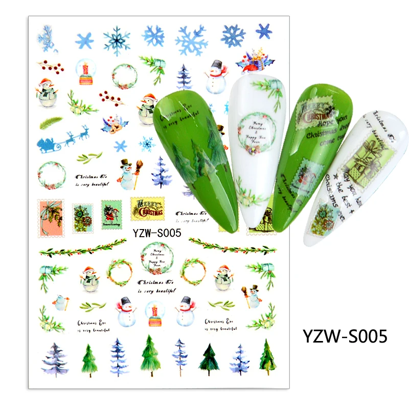 Наклейки для ногтей на ремешке, рождественские наклейки для снега, наклейки для самостоятельного маникюра, водяные знаки YZ02