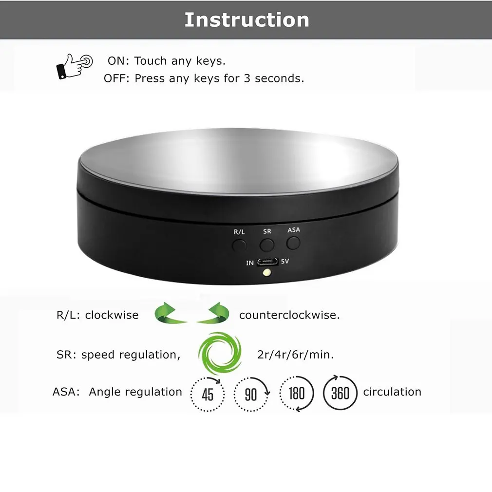 2. Бесшумное и плавное вращение: вы обнаружите, что поворотный стол является идеальным продуктом. Эта Поворотная поддержка работает с низким уровнем шума и низким энергопотреблением. 50-60 децибел не повлияет на вашу видеосъемку.