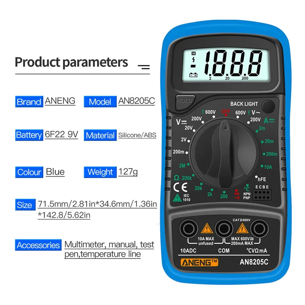 Мультиметр Многофункциональный цифровой с ЖК-дисплеем и подсветкой