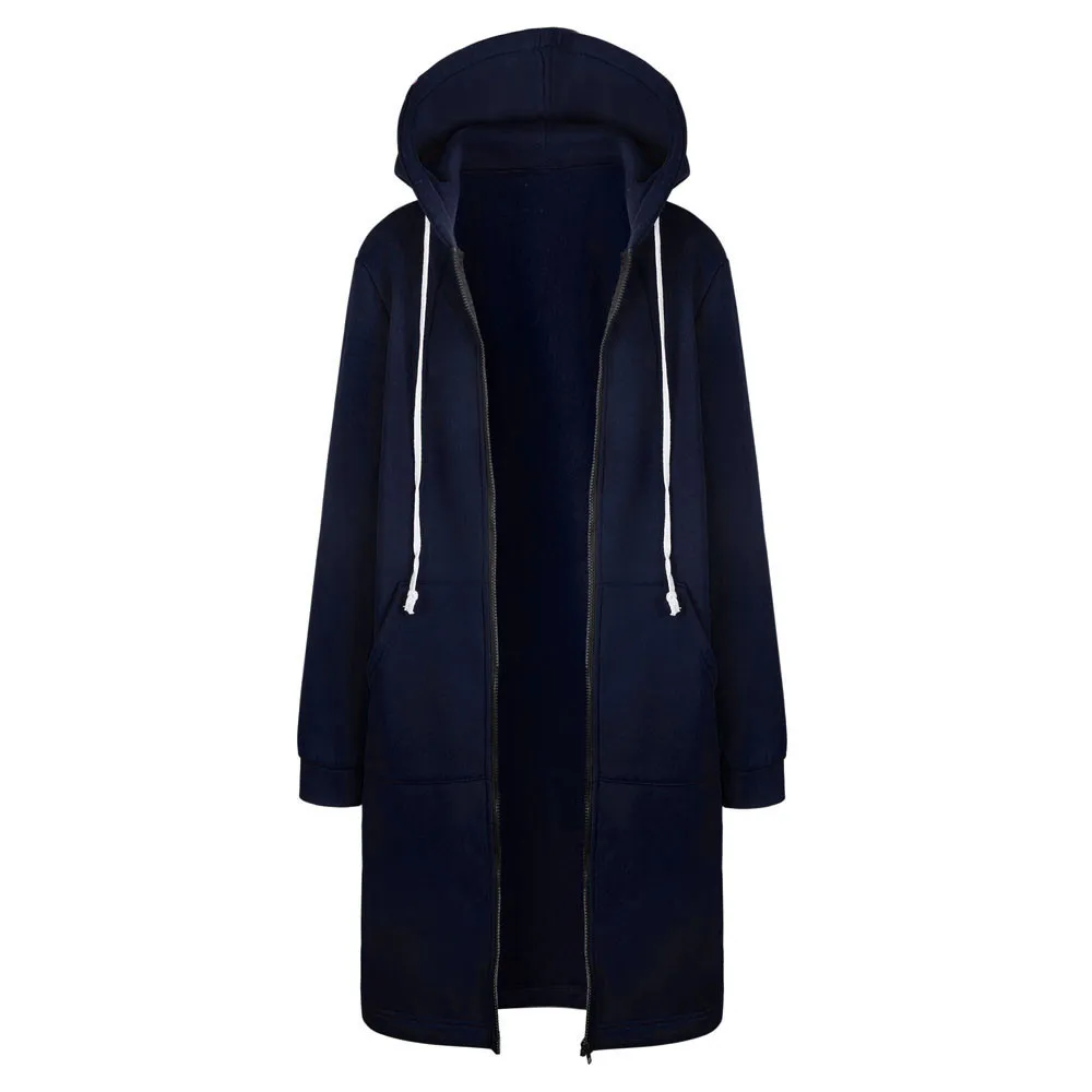 Женское длинное пальто, теплая толстовка на молнии, Осень-зима 2020