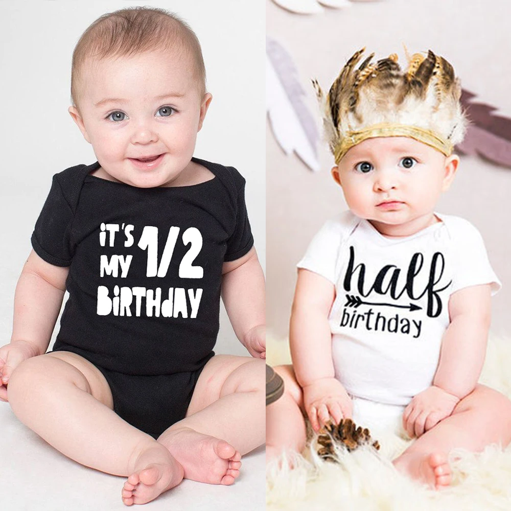Комбинезон унисекс на половину дня рождения для маленьких мальчиков и девочек, детские комбинезоны, 1/2 цельные повседневные комплекты одежды с короткими рукавами, вечерние, подарок