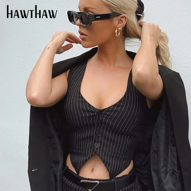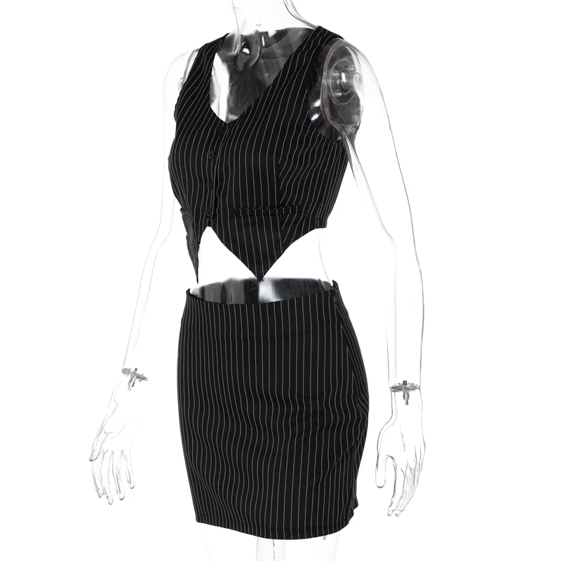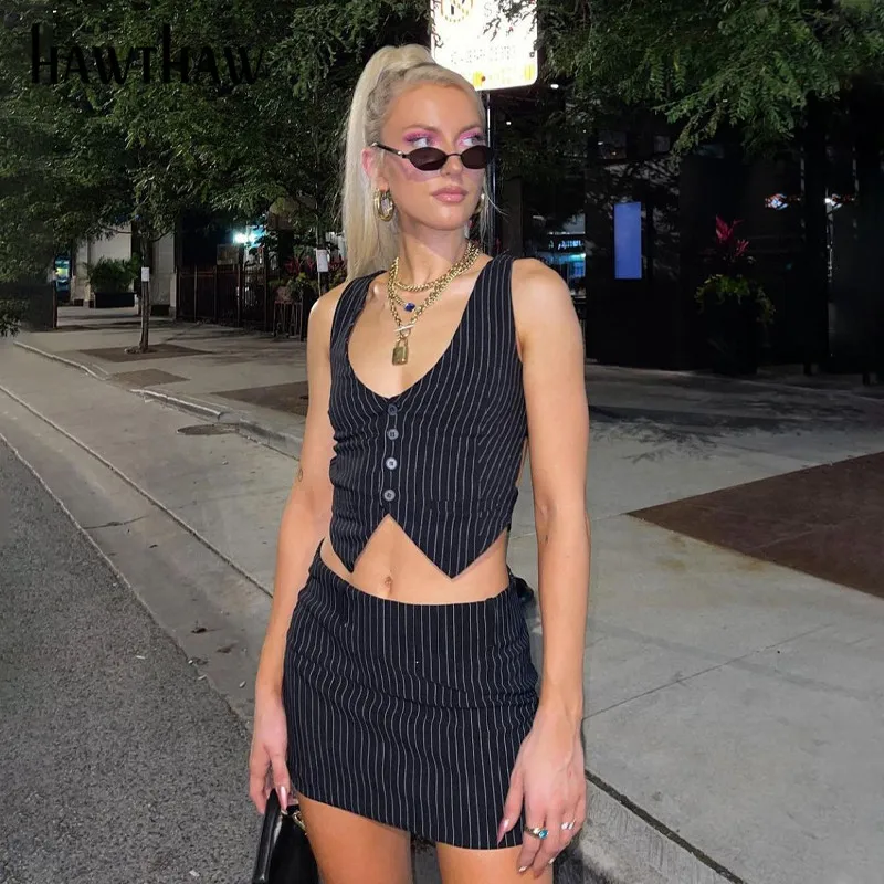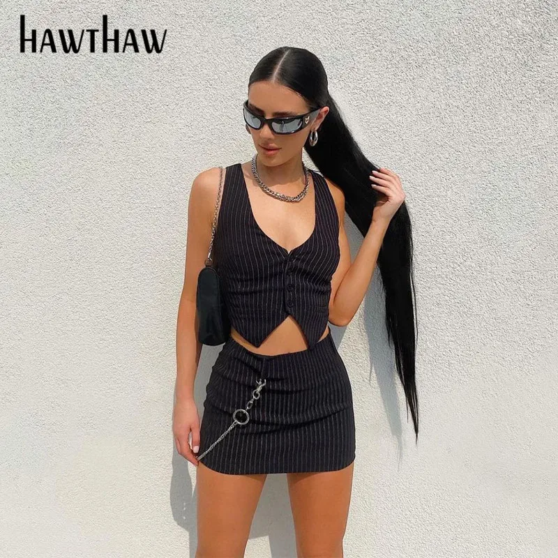Женский Осенний укороченный топ в полоску Hawthaw, облегающий черный комплект из двух предметов с мини-юбкой, костюм, уличная одежда, осенняя одежда 2021