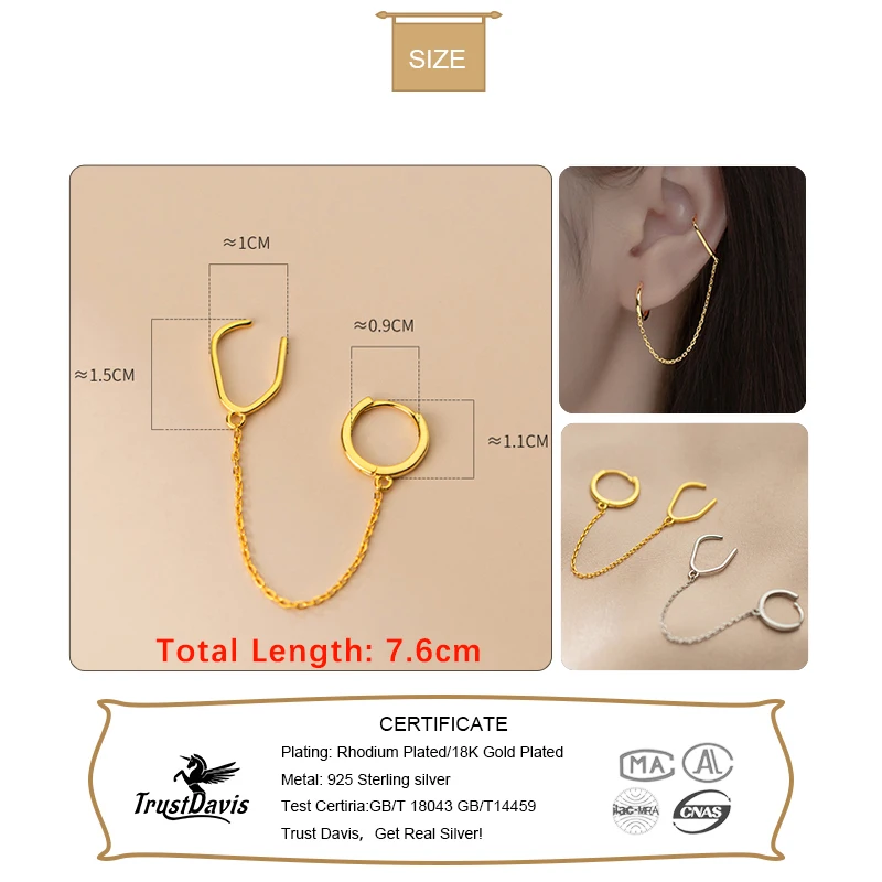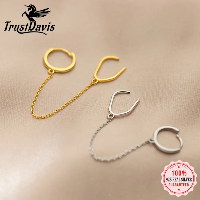 Trustdavis, 1 шт., Настоящее серебро 925 пробы, модная Минималистичная цепочка, серьги-кольца для женщин, ювелирные изделия для свадебной вечеринки DA2494