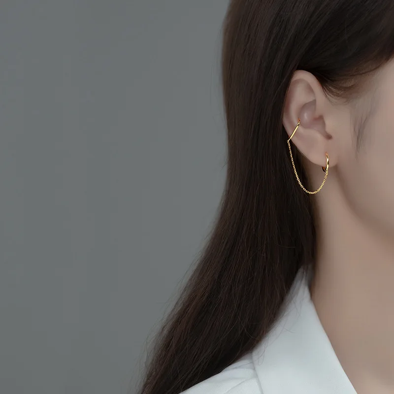 Линия уха женская из серебра 925 пробы с гладкой поверхностью, 10 см