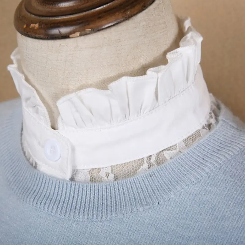 Модная женская Однотонная рубашка, хлопковая кружевная блузка с ложным воротником, белая и черная винтажная съемная регулируемая одежда, аксессуары, накладная половина