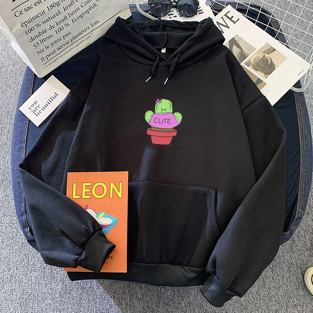 Женское плотное пальто, теплый пуловер с капюшоном в стиле Харадзюку, кавайная Толстовка Оверсайз, женская уличная одежда в Корейском стиле, худи с принтом в виде букв кактусов