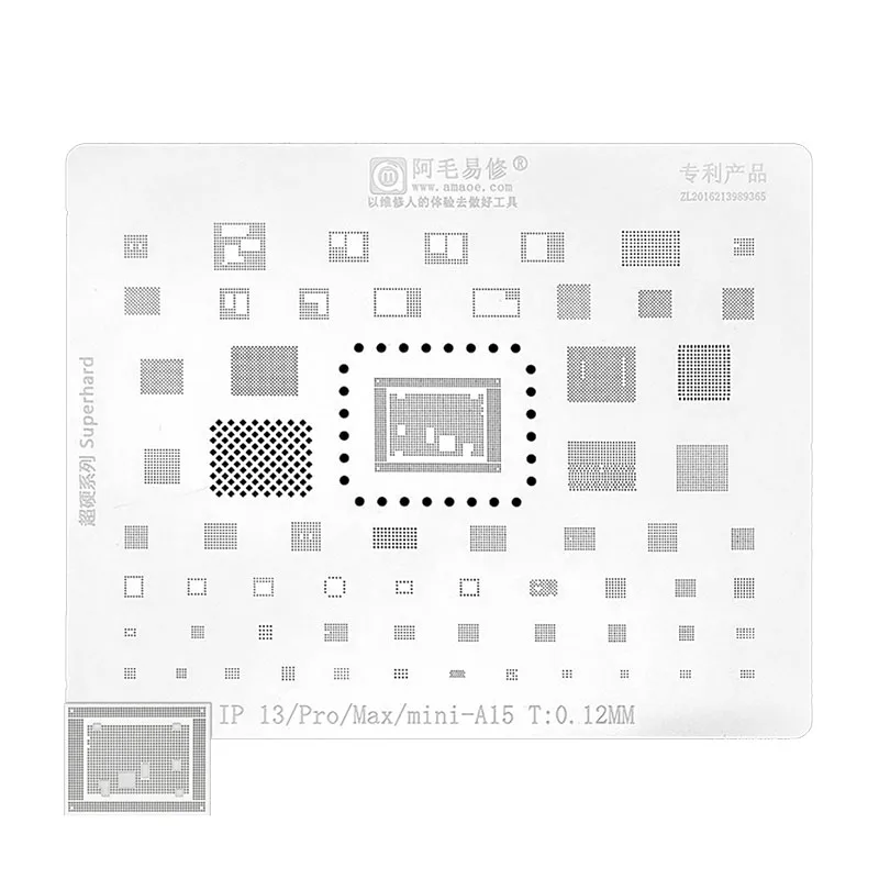 Amaoe BGA трафарет для реболлинга для iPhone 13 Pro Max Mini 13Pro A15 Wi-Fi аудио Мощность процессор RAM IC чип Оловянная сетка стальная сетка