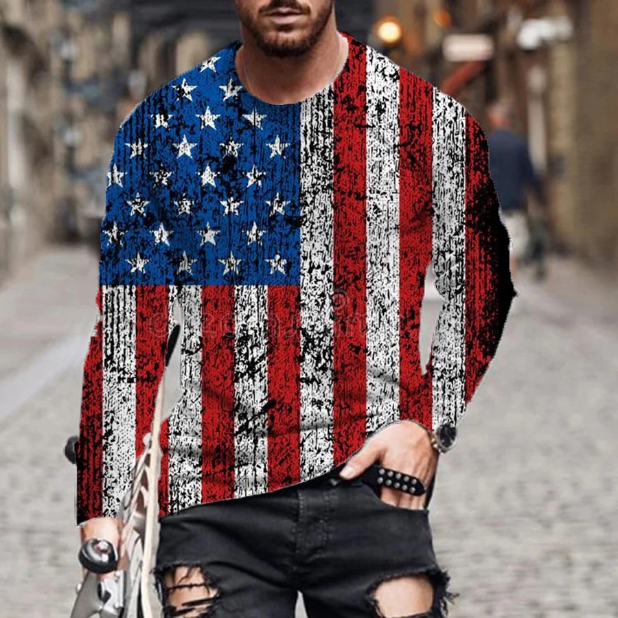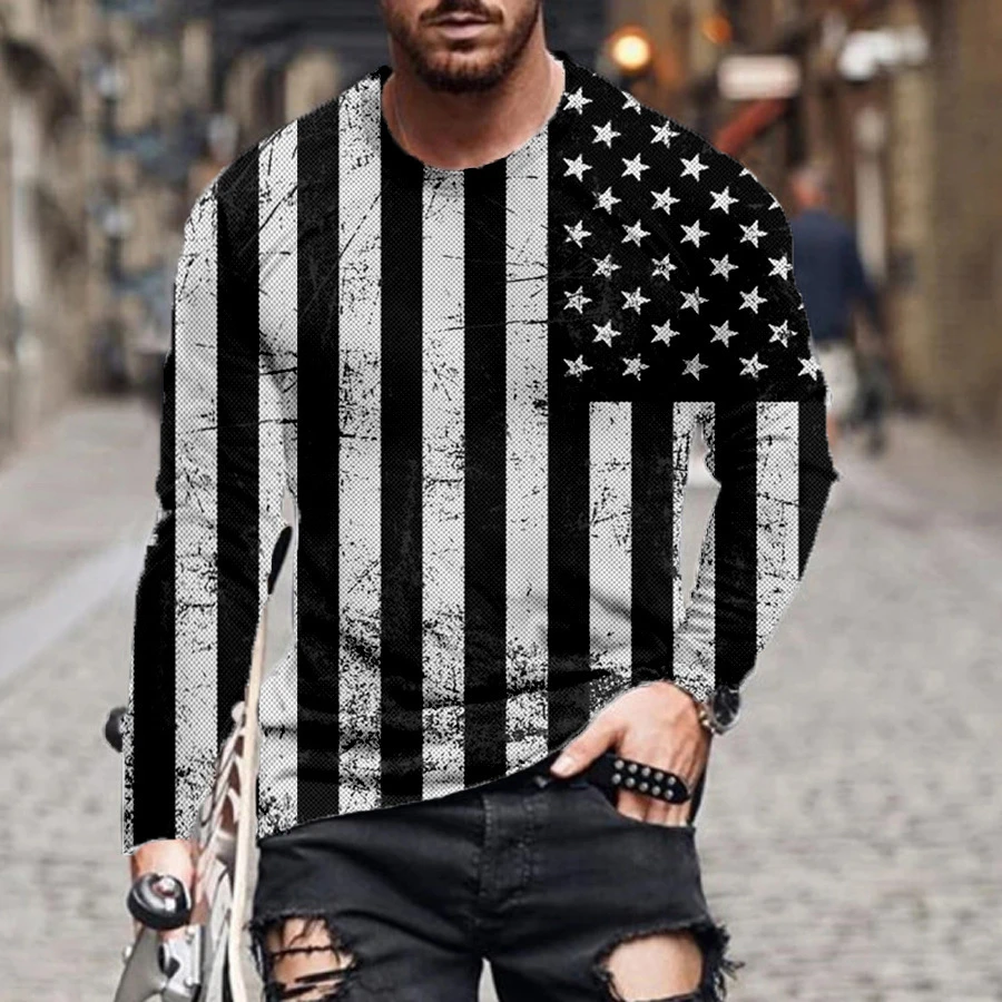 Футболка мужская с длинным рукавом, свободная Ретро футболка с круглым вырезом, флагом, Орлом, черепом, 3D-принтом, в европейском и американском стиле