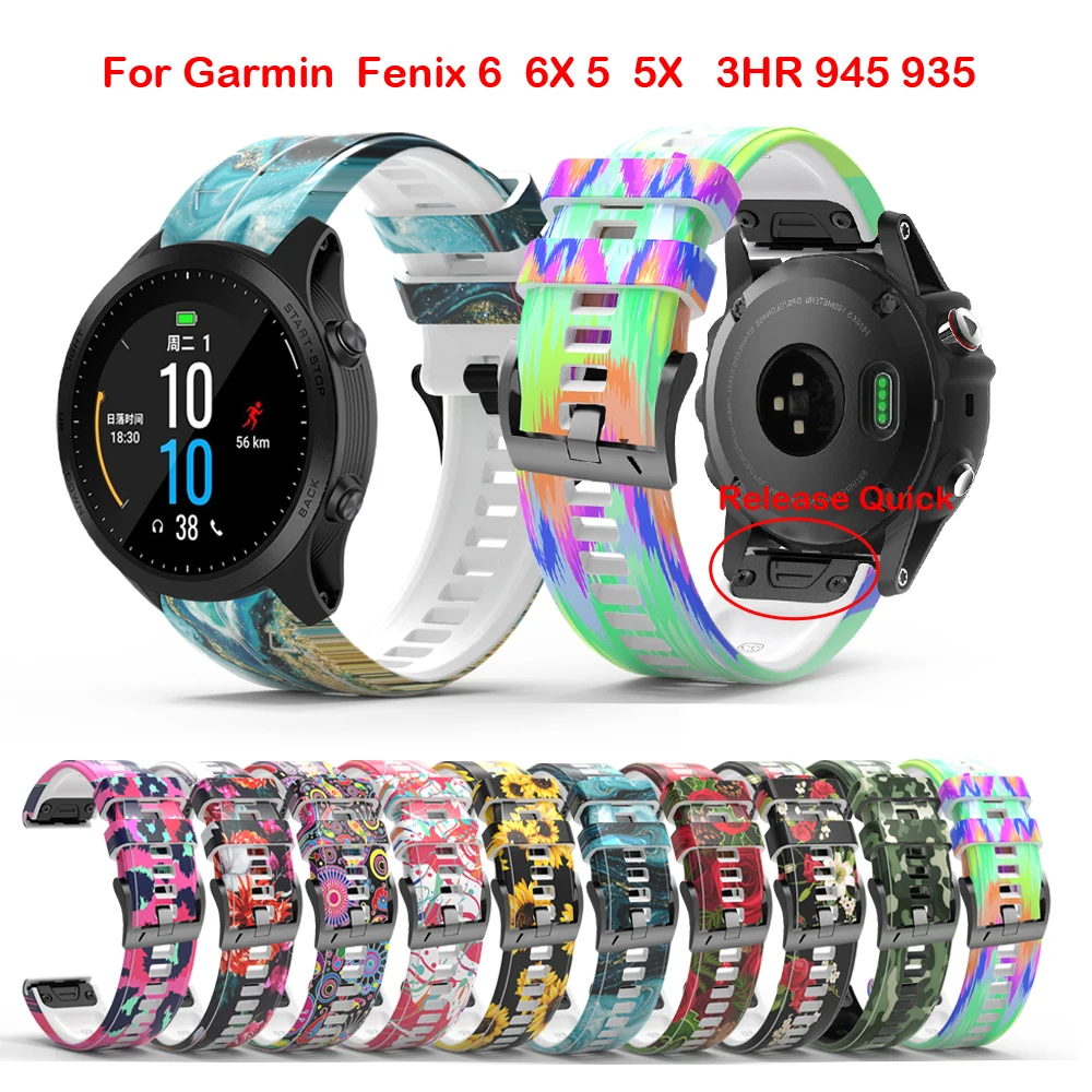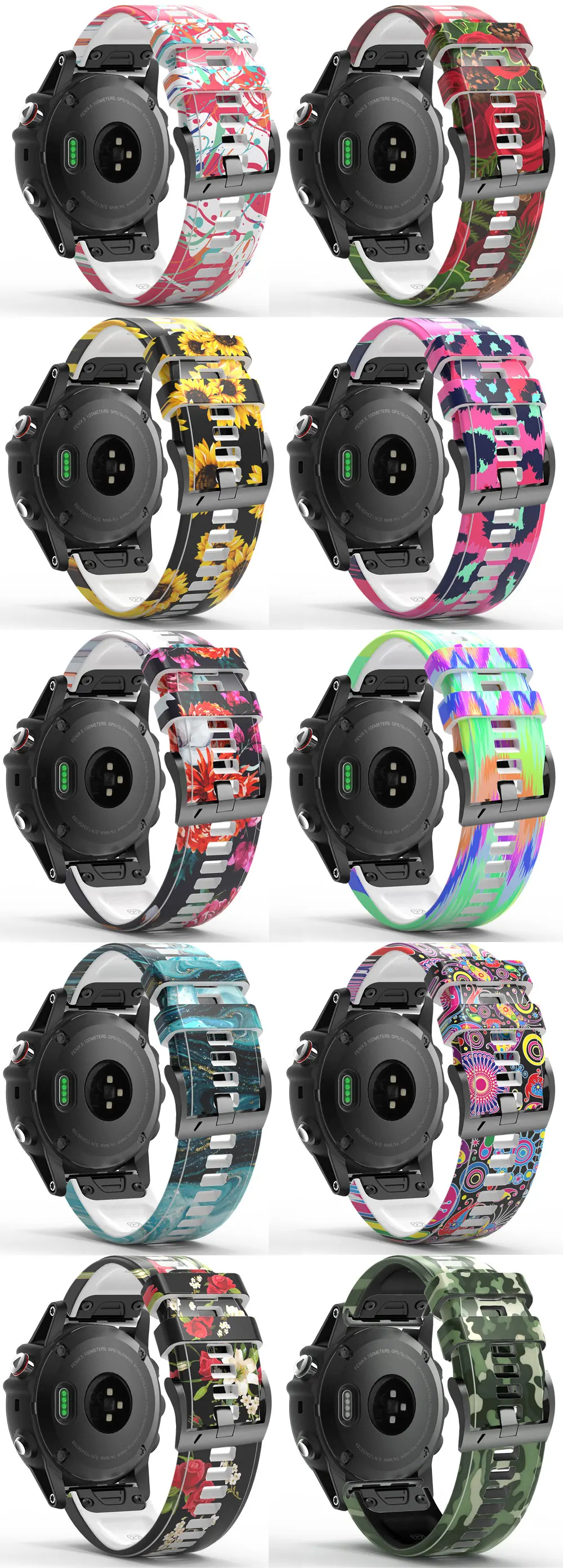 Ремешок силиконовый для наручных часов, быстросъемный браслет с принтом для Garmin Fenix 6X 6 Pro 7 7X 5X 5 Plus 3 3HR Epix 945, 26 22 мм