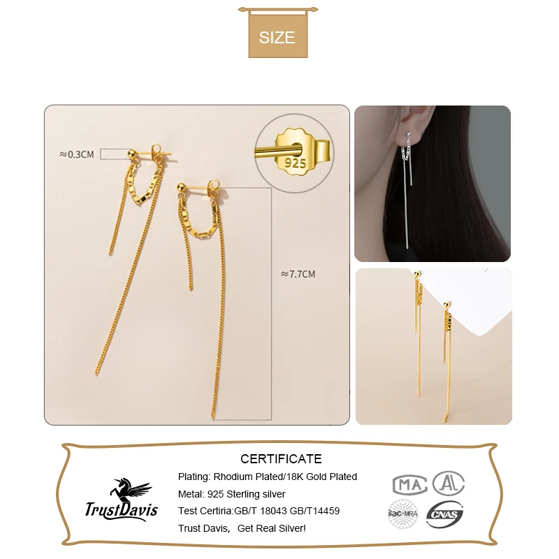TrustDavis настоящие 925 стерлингового серебра модные минималистичн...