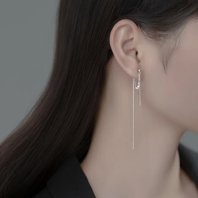 Линия уха женская из серебра 925 пробы с гладкой поверхностью, 10 см