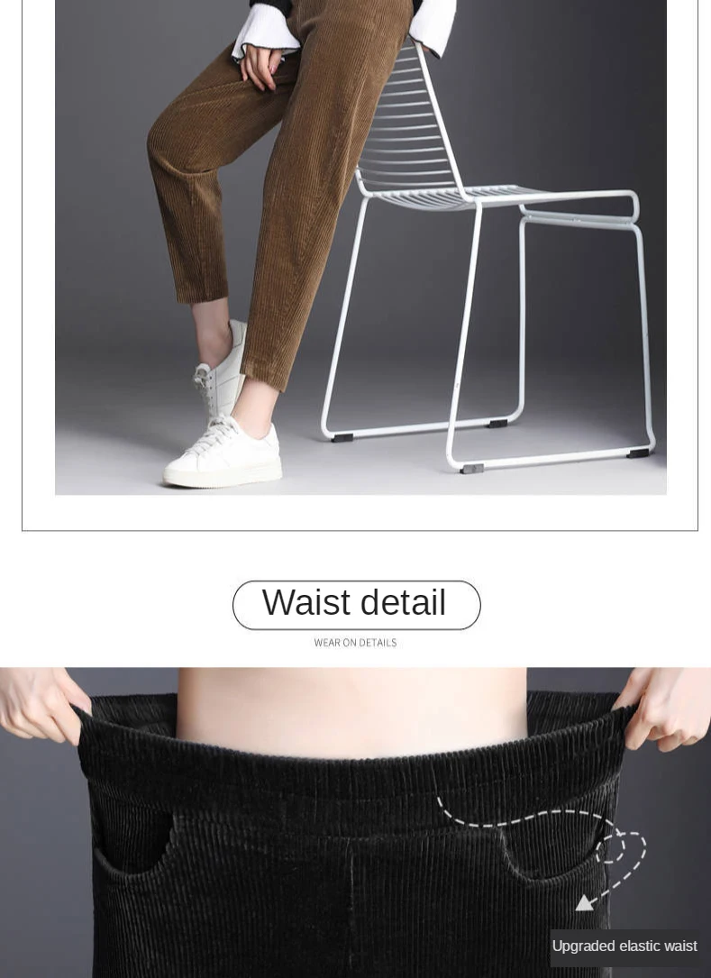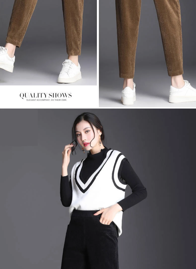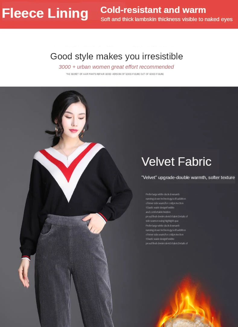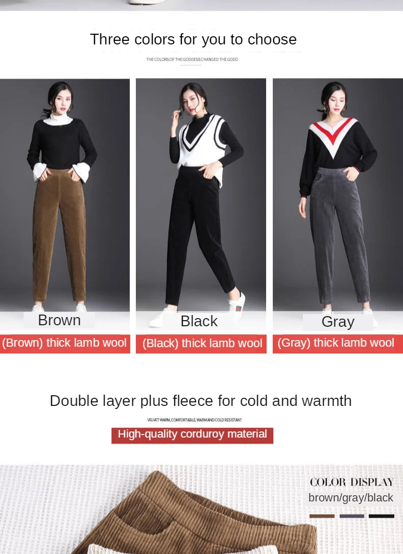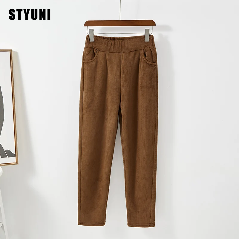 Брюки женские вельветовые утепленные с высокой талией, на осеньзиму