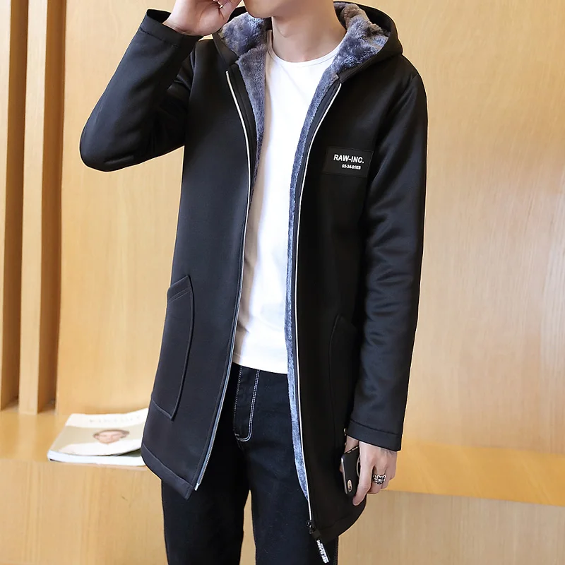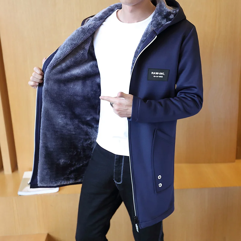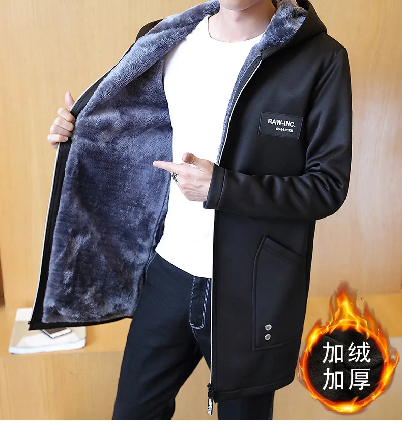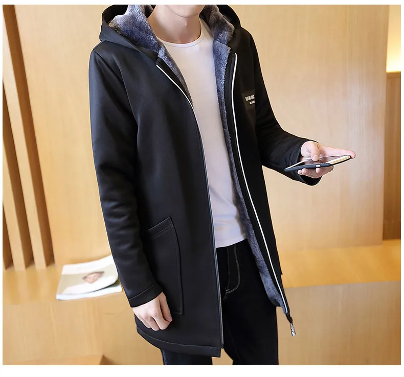 Зимняя мужская парка средней длины с подкладкой и бархатной подкладкой, теплое свободное ветрозащитное пальто с капюшоном, однотонная мужская повседневная стеганая куртка для инструментов