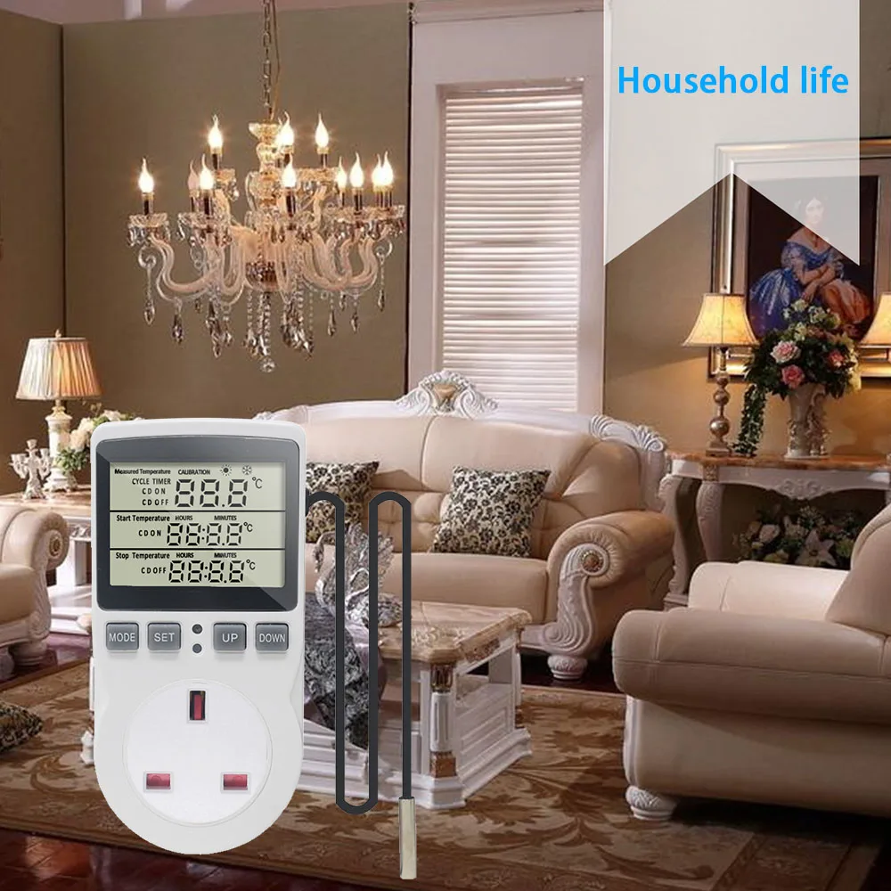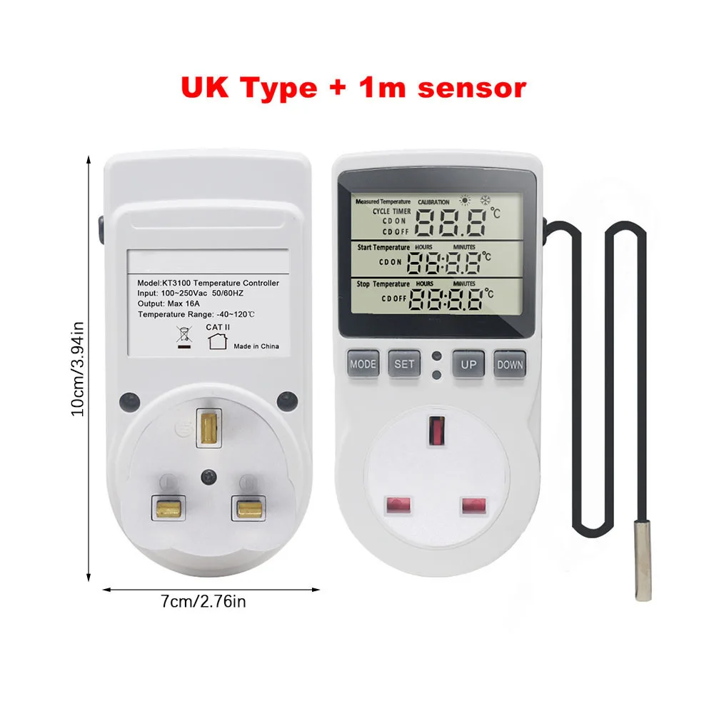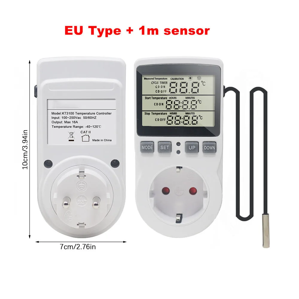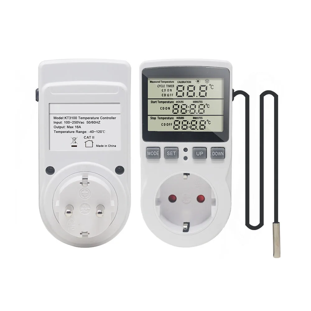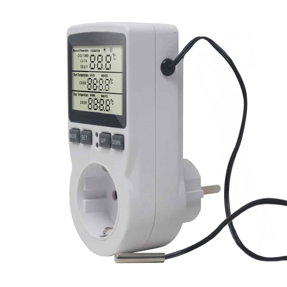 Внешний температурный детектор может обнаруживать температуру.Установите температуру начала и остановки.Хранение данных, время цикла, время запуска, переключатель синхронизации.После выключения питания все текущие настройки будут сохранены.Он широко используется в интеллектуальном контроле углеродного отопления, аквакультуры, теплиц, домашней жизни и других местах.Товар Название: Программирующая розетка термостатаМатериал: пластикЦвет: белыйРазмер: 10x7x8 смВилка: ЕС/Великобритания/СШАХарактеристики:Номер модели: розетка таймера термостатаМаксимальная измерительная температура: 100 °C - 119 °CТип дисплея: ЦифровойИспользование: домашнее хозяйствоТип питания: зарядное устройствоСтиль: стоячий и настенныйРазмер дисплея: 2,0-3,9 дюймаДлина кабеля: 1 мЭто умное устройство: нетПримечание:-Возможны небольшие погрешности в размере при ручном измерении.-Отклонение цвета может отличаться из-за различных настроек монитора, пожалуйста, поймите.Упаковочный лист