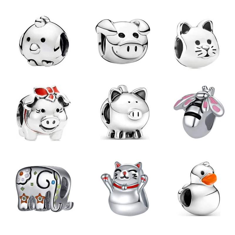 Новинка, серебряный цвет, милая утка, счастливая кошка, фотопчела, подходит для браслета Pandora, шармы, DIY, женский подарок, оригинальные бусины, оптовая продажа, изготовление на заказ