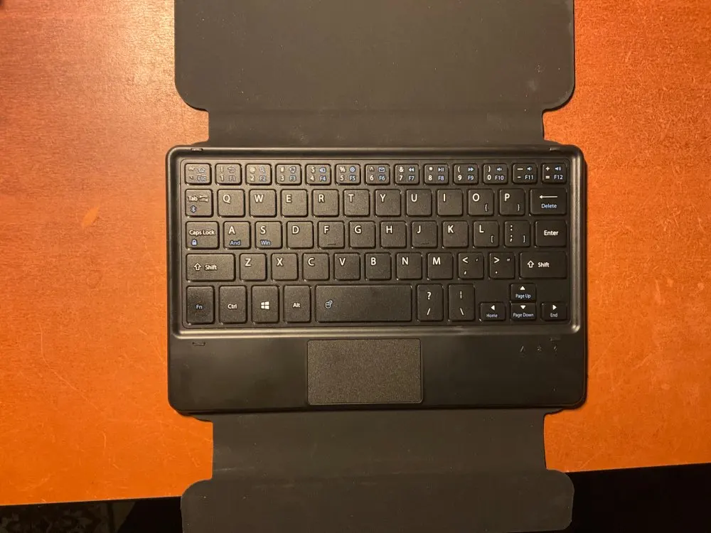 Клавиатура пришла с английской, хотя просил с русской, раскладкой. Правда обещали прислать и уже выслали за небольшую плату, наклейки с русской раскладкой. Сама клавиатура не плохая, но немного больше по размеру чехла. Это немного огорчило.