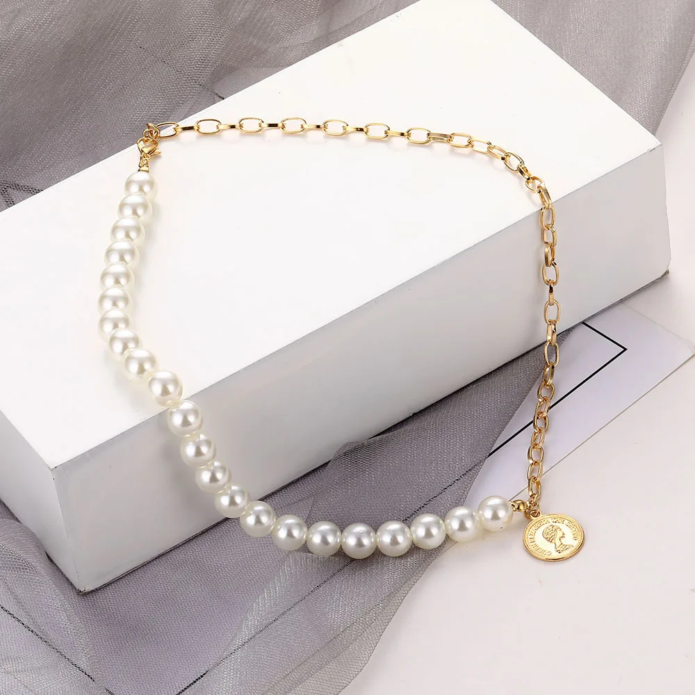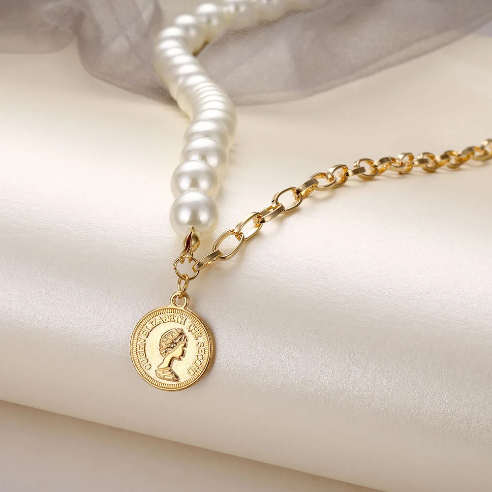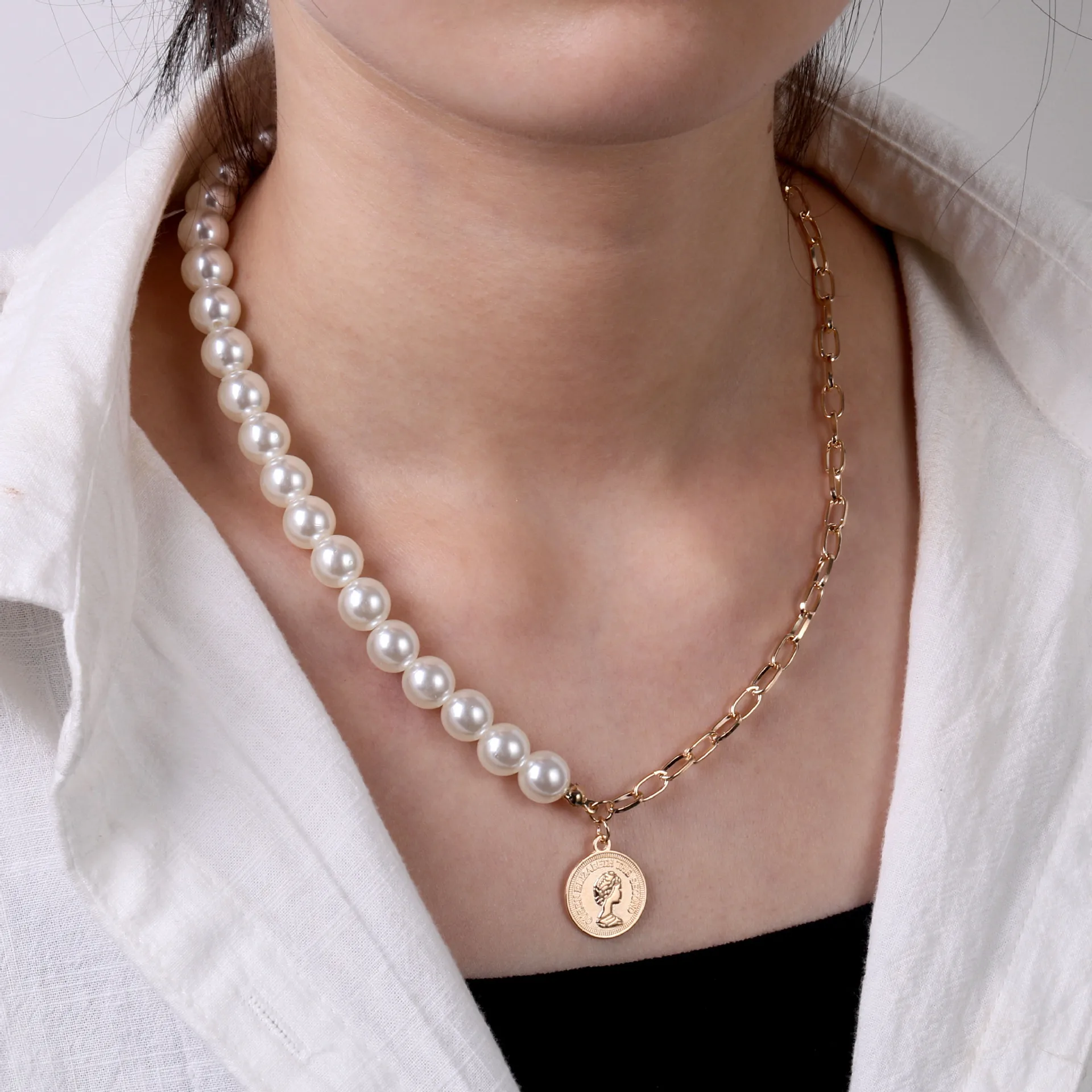 Многослойное жемчужное ожерелье в стиле панк, хип-хоп, монета с пор...