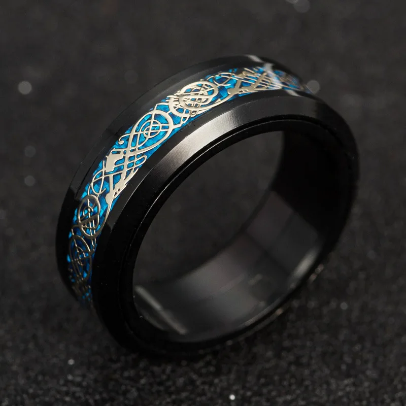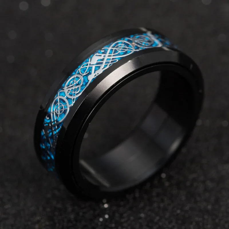 Крутое кольцо из углеродного волокна для мужчин и женщин, поворотное ювелирное изделие из нержавеющей стали с драконом, высокая яркость, в стиле панк, для вечеринки, на подарок