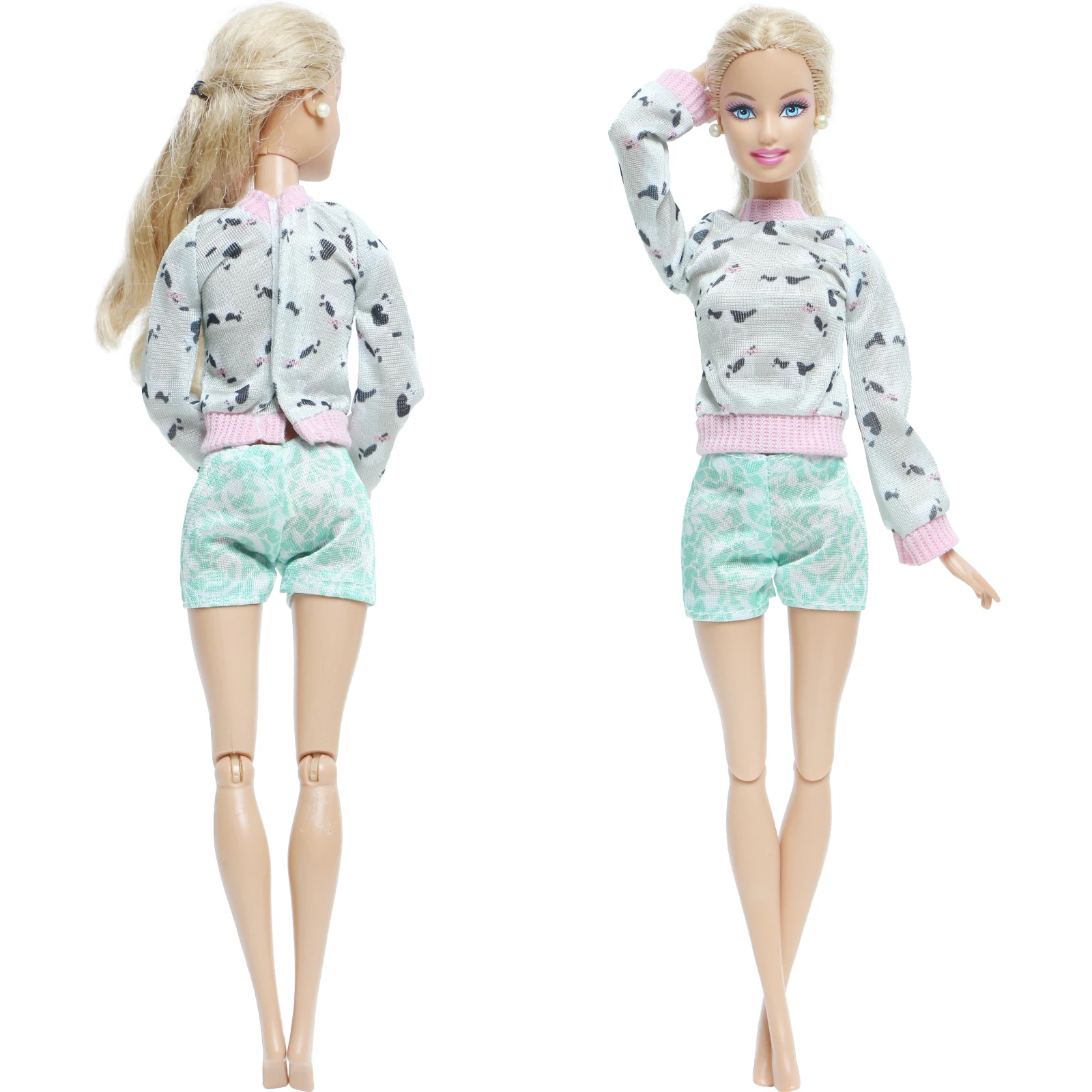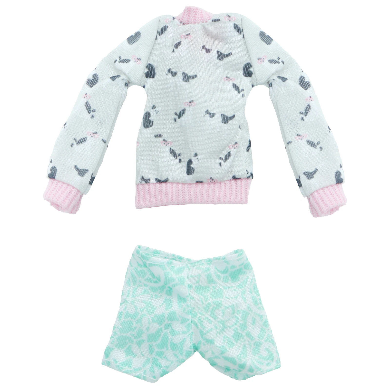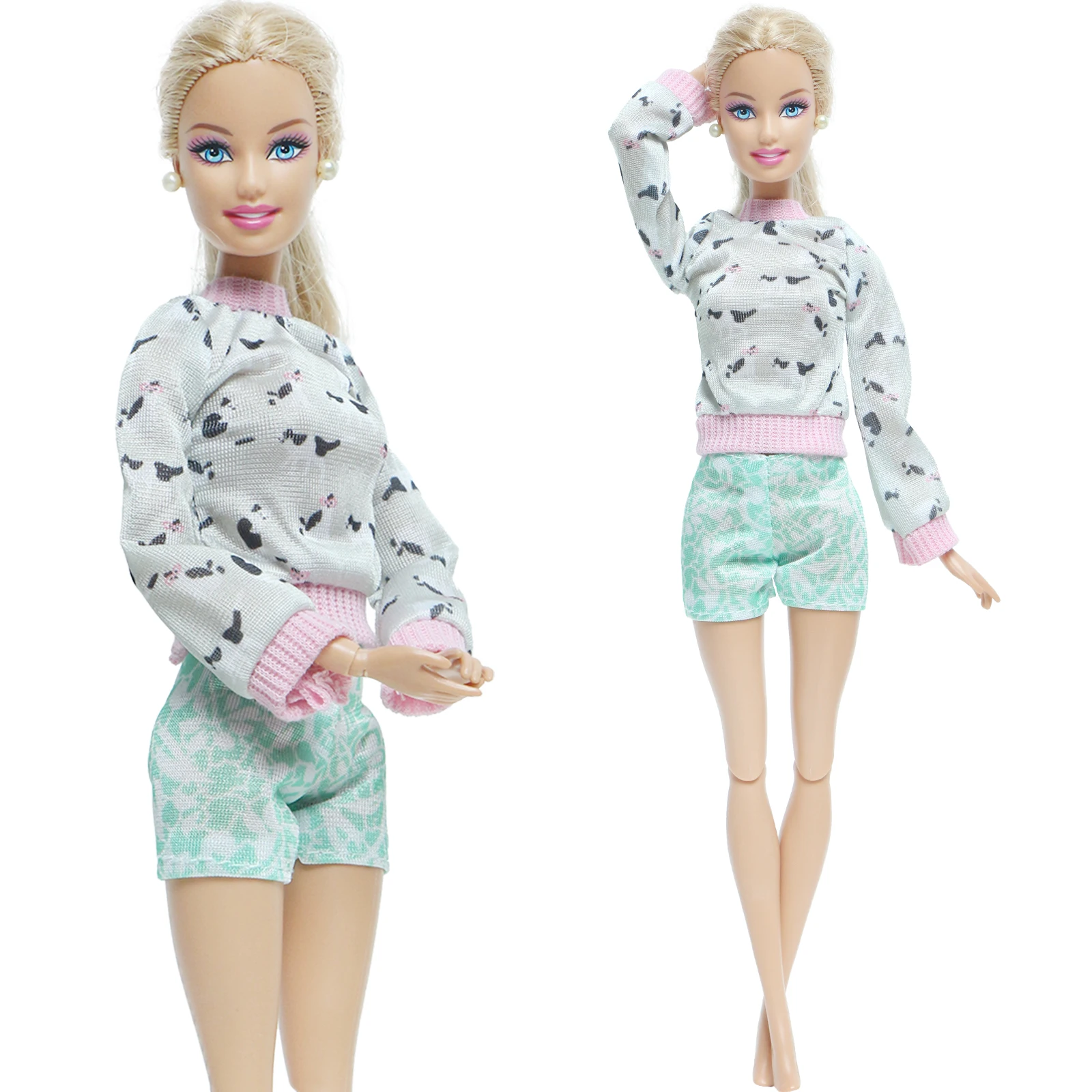 Зимний наряд BJDBUS для кукол, блузка с изображением милого кота + зеленые короткие штаны, Одежда для кукол Барби, аксессуары для детей, Подарочная игрушка
