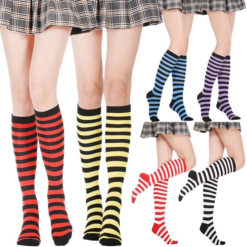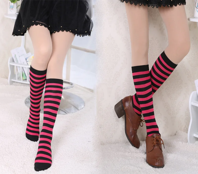 Женские гольфы в полоску, милые Хлопковые гольфы в студенческом стиле для косплея JK, милые студенческие черные японские гольфы до бедра