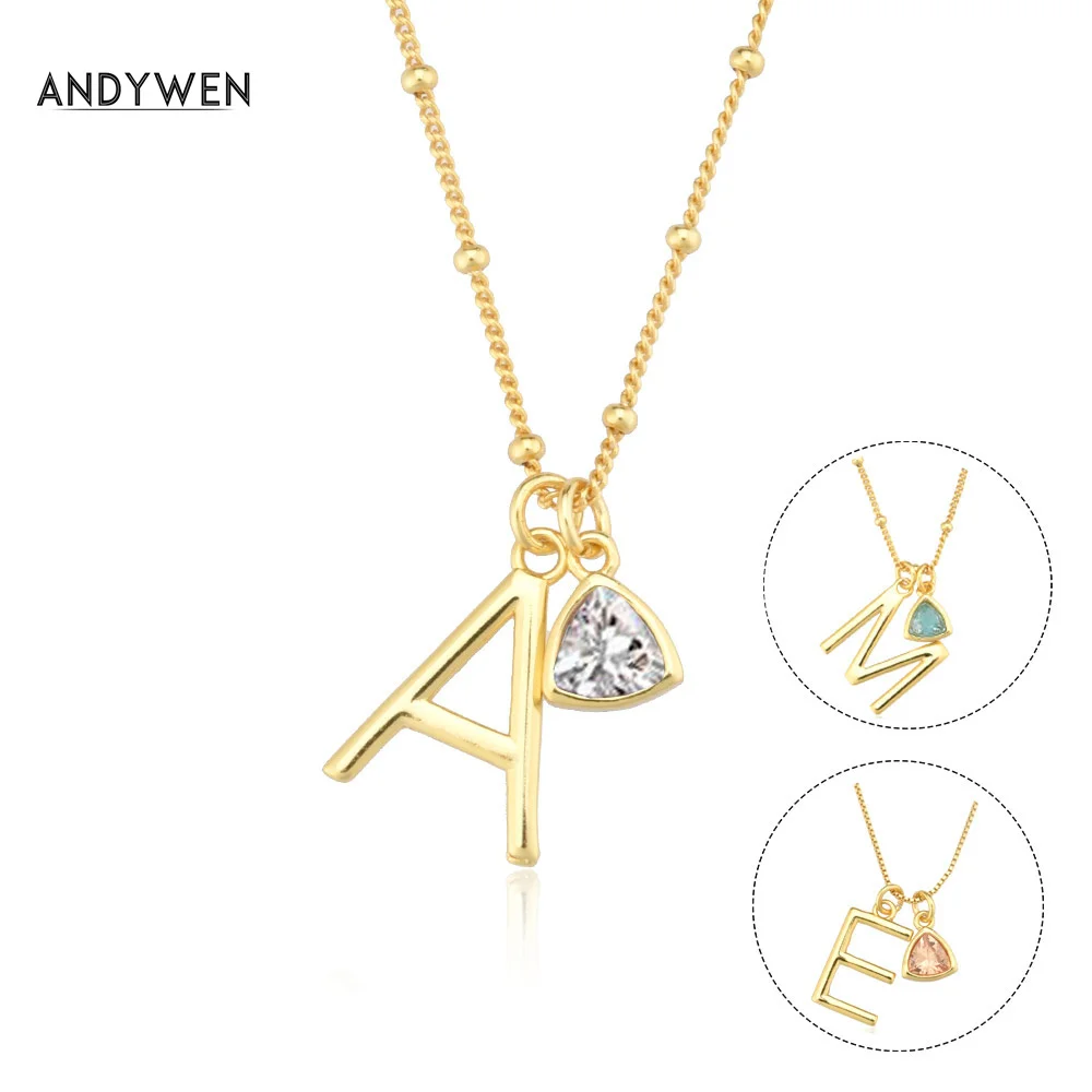Подвеска ANDYWEN из стерлингового серебра 925 пробы с золотыми буквами, подвеской-талисманом для длинной цепочки, ожерелье-чокер, аксессуары, свадебные украшения