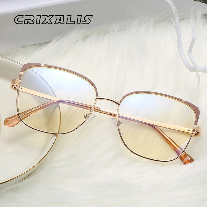 Очки CRIXALIS женские с защитой от синего света, Модные металлические Рецептурные очки кошачий глаз в оправе, для компьютера, UV400