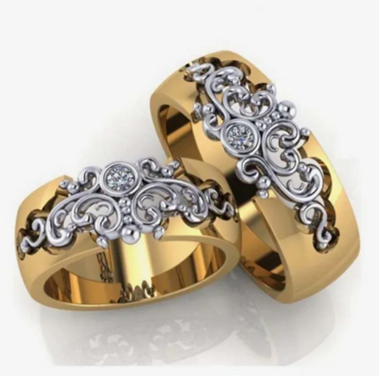Двухцветное обручальное кольцо в стиле ретро, с вырезами