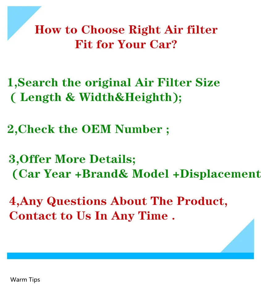 Если вы не уверены, можно ли использовать ваш автомобиль, вы можете измерить размер оригинального воздушного фильтра. Есть зазор 2-4 мм на замену воздушного фильтра с оригинальным воздушным фильтром.