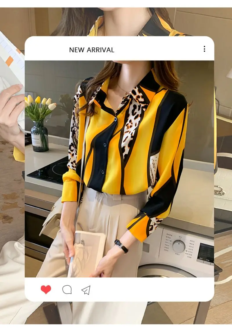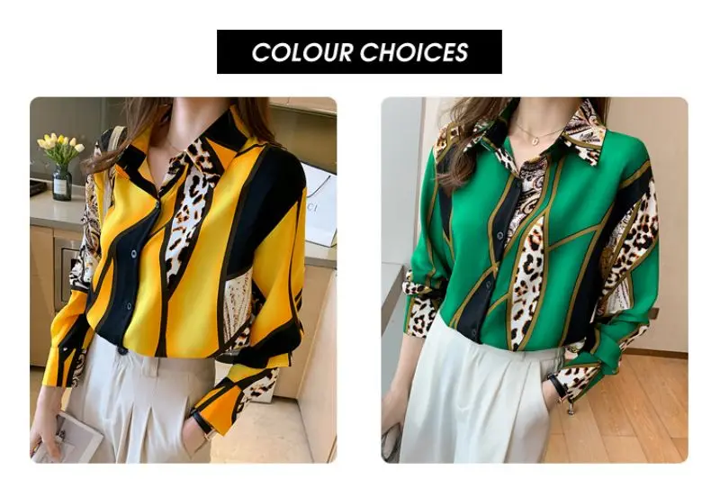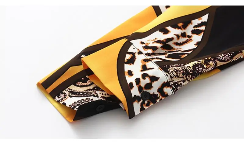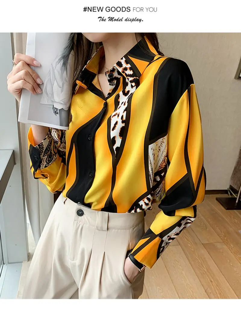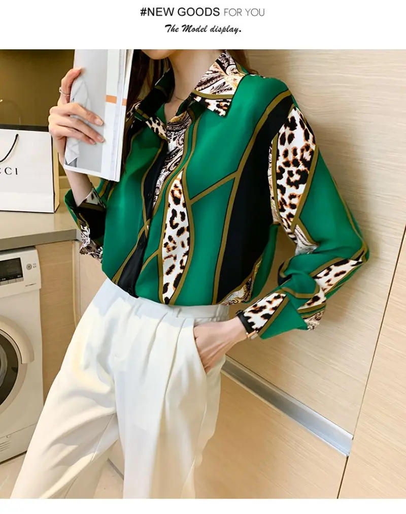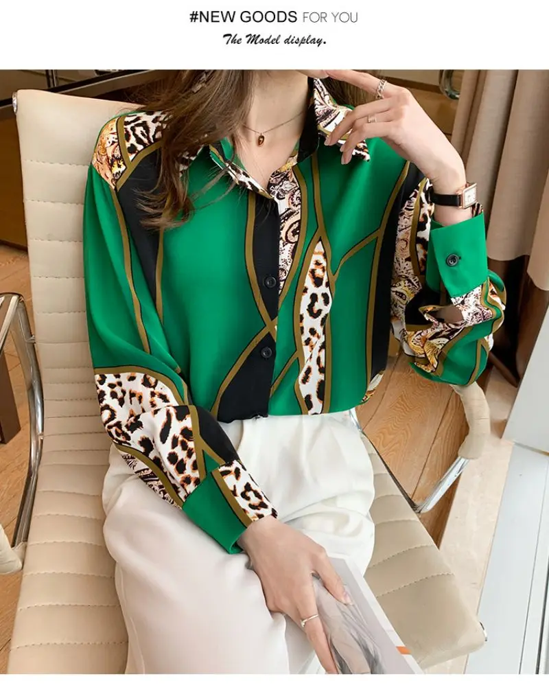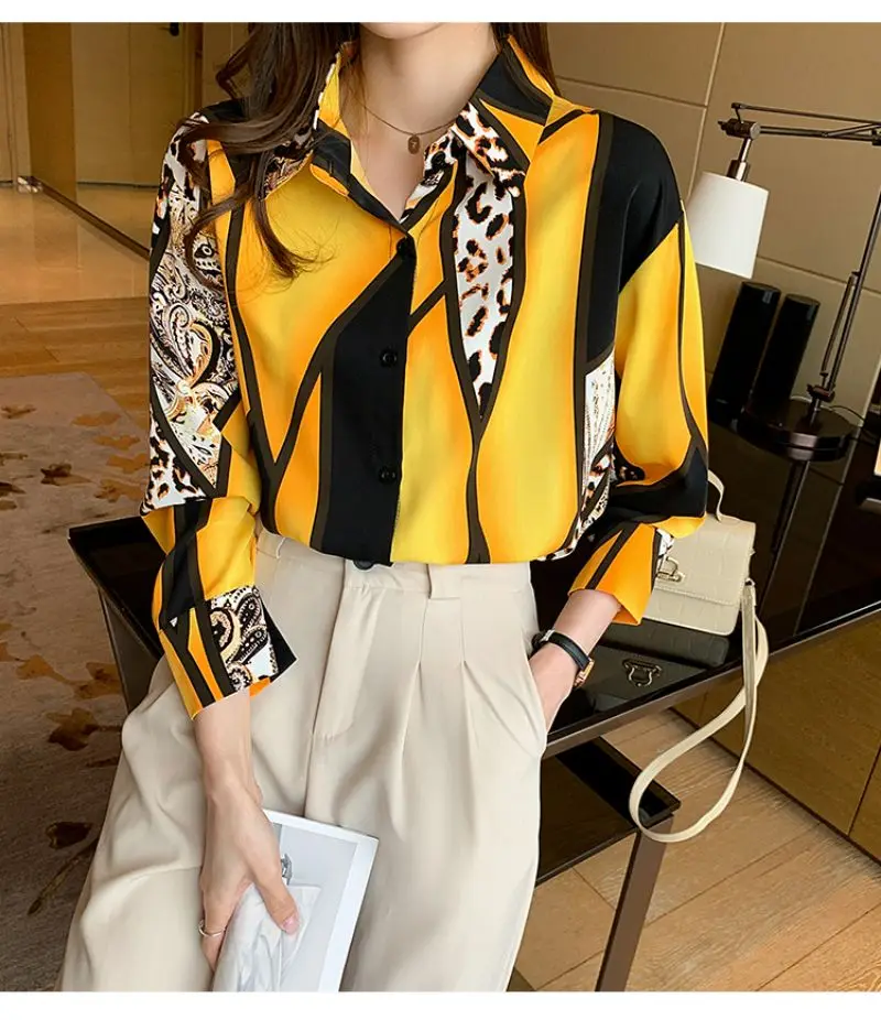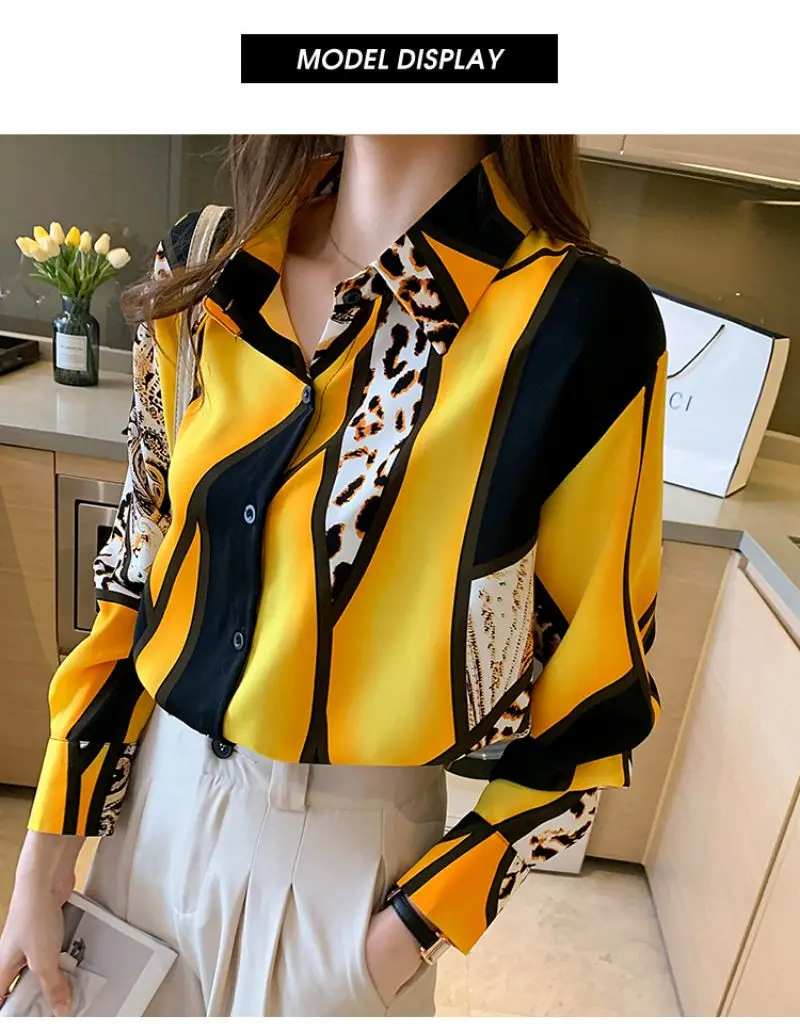 Шифоновая рубашка в стиле ретро, с леопардовым принтом, осень 2021, новая модная однобортная Повседневная рубашка в полоску с длинными рукавами и контрастным отворотом