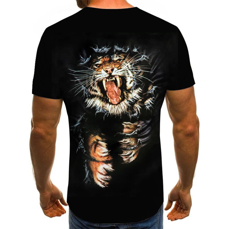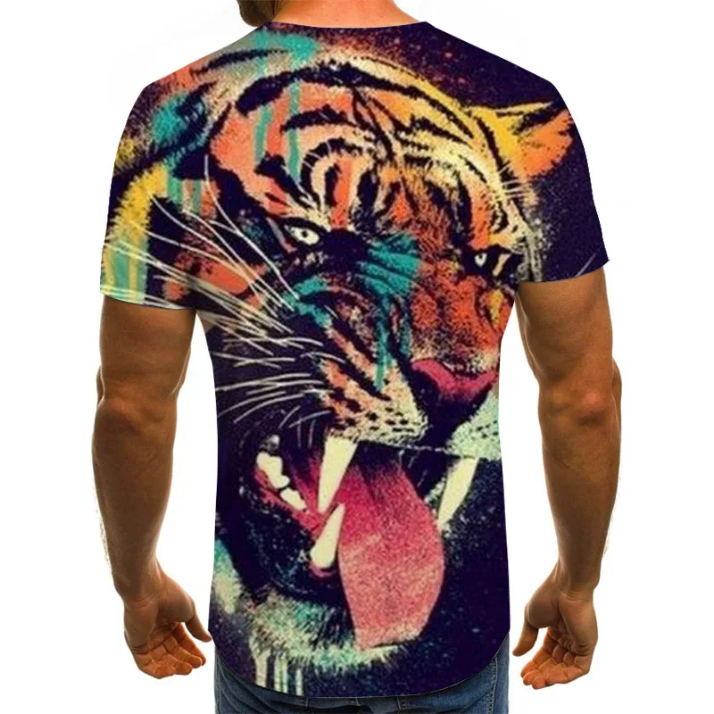 Футболка мужская с коротким рукавом, модная повседневная рубашка в стиле хип-хоп, с принтом тигра и тигра, лето 2021