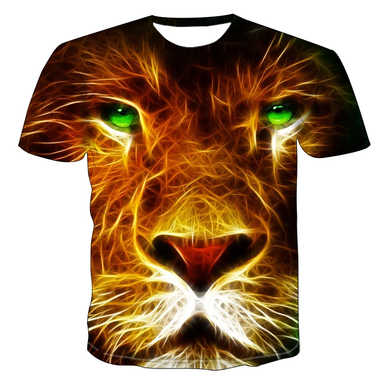 Модная Летняя мужская футболка с 3D принтом льва с коротким рукавом...