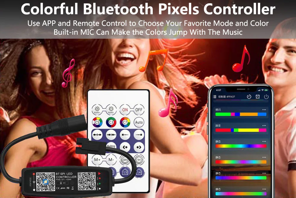 Светодиодный контроллер WS2811 WS2812B, Bluetooth-музыка с микрофоном, для пиксельных светодиодных лент SK6812 WS2812, с дистанционным управлением через приложение клавиш
