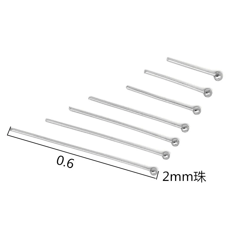 Круглые булавки с шариковой головкой из нержавеющей стали, 50 шт.лот, длина 18, 20, 25, 30, 35 мм, для самостоятельного изготовления сережек, ювелирных изделий, Диаметр 0,6 мм