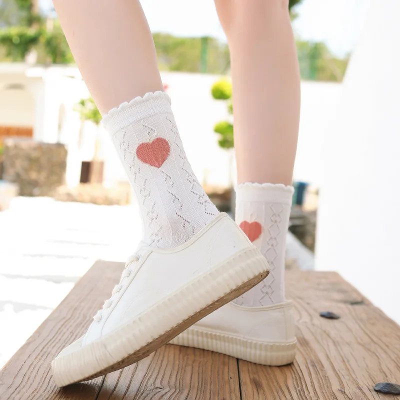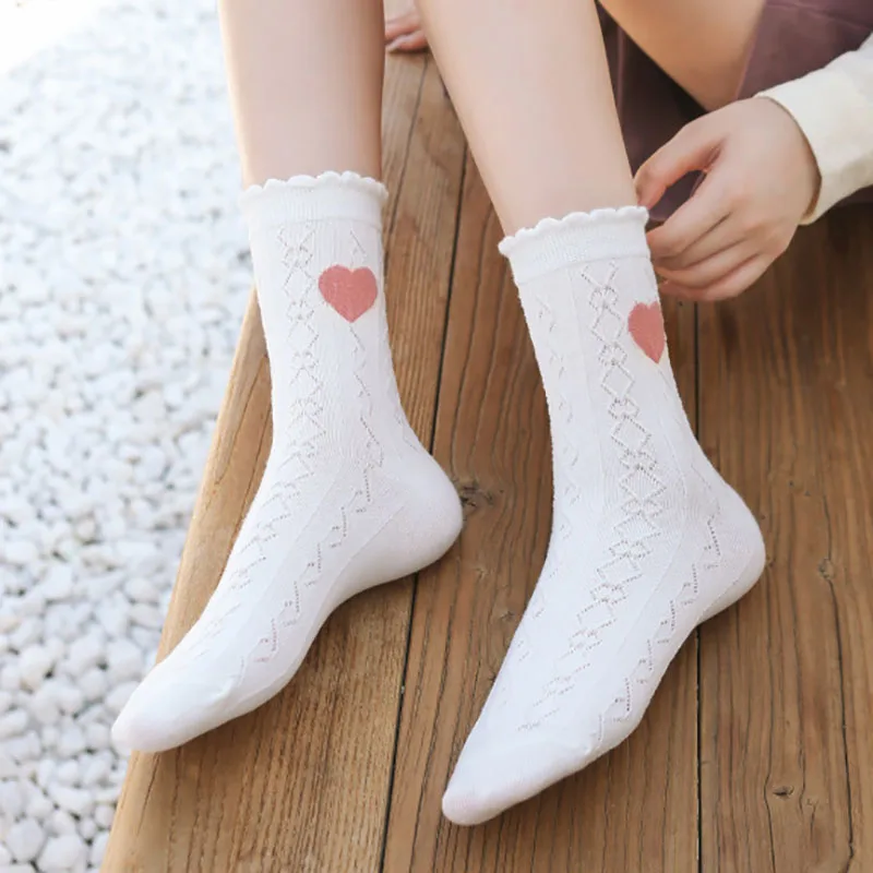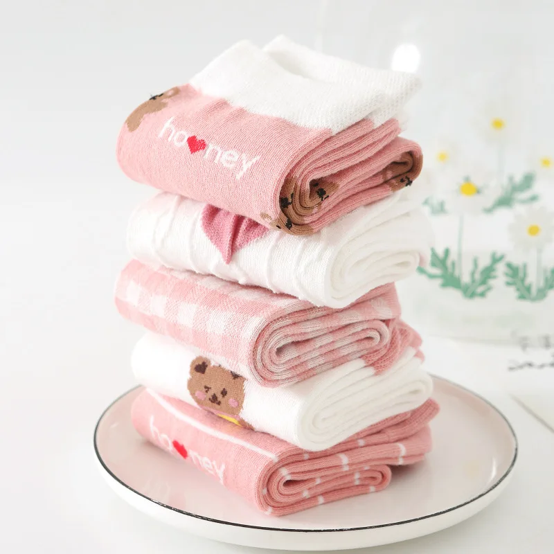 Милые Мультяшные розовые носки с маленьким медведем, женские полосатые носки с рюшами, кавайные женские носки в стиле Харадзюку, женские хлопковые японские носки
