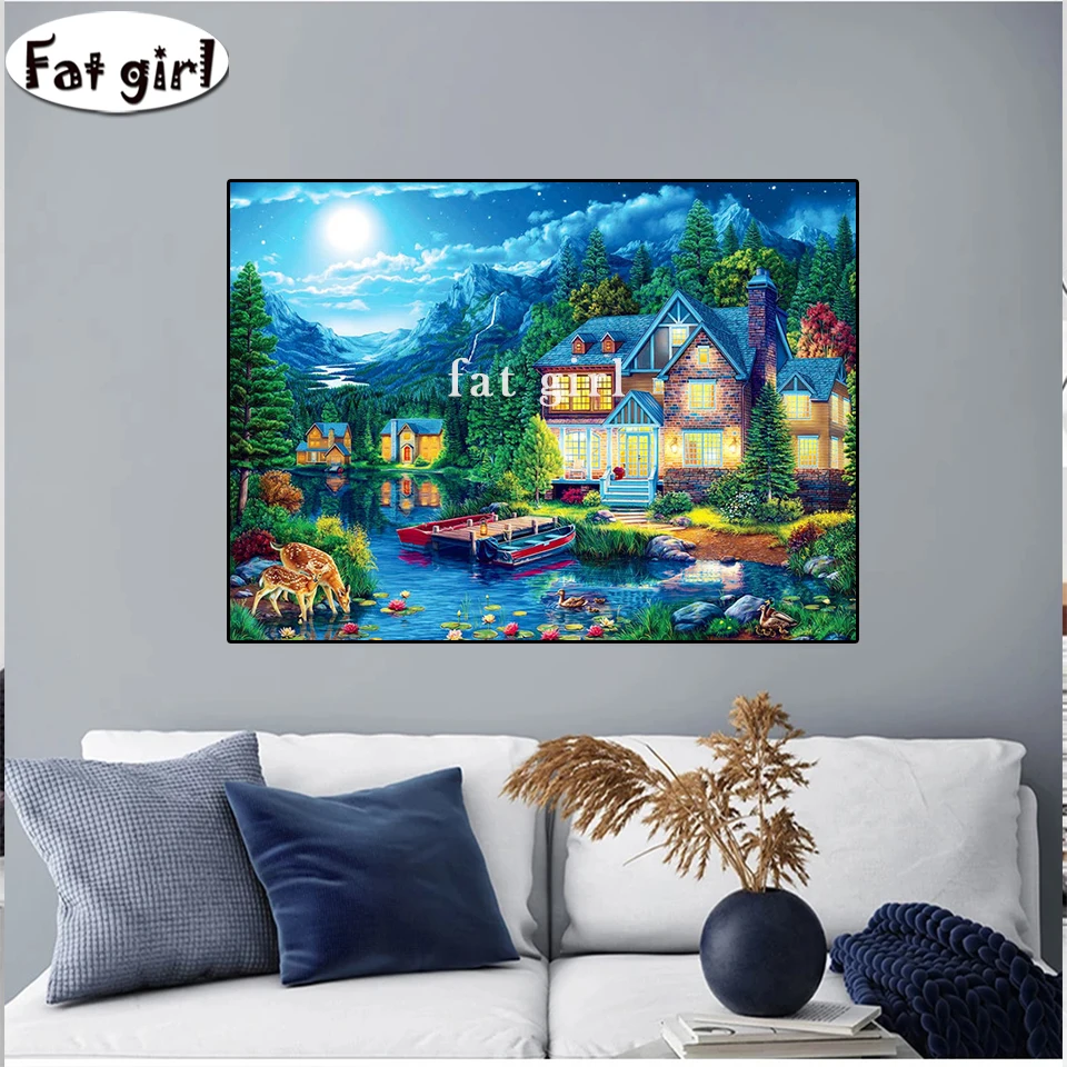 Алмазная живопись сделай сам, вышивка крестиком, деревенский пейзаж, рукоделие, 5D Вышивка дом стразами Lake, мозаика, художественные наборы, луна, домашний декор