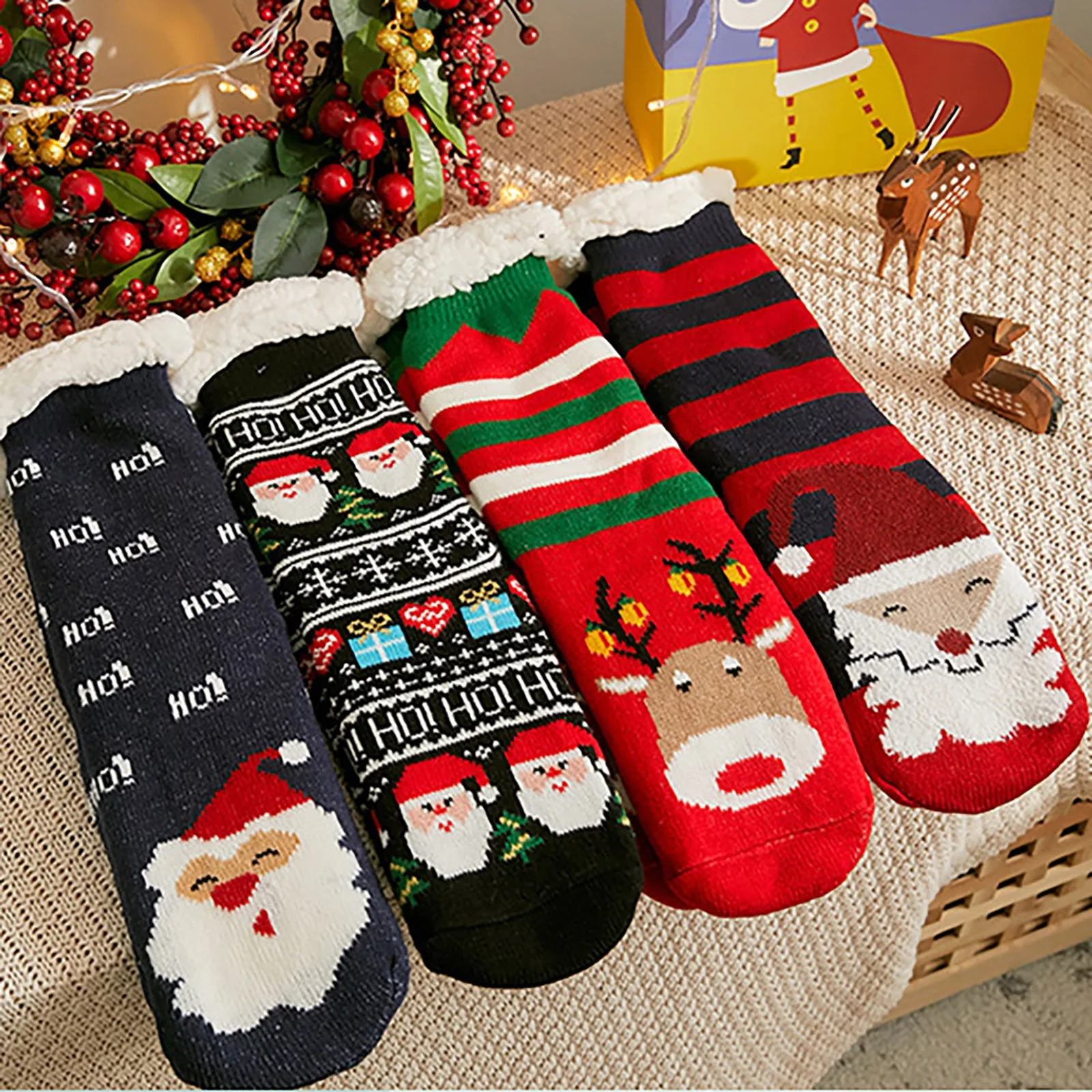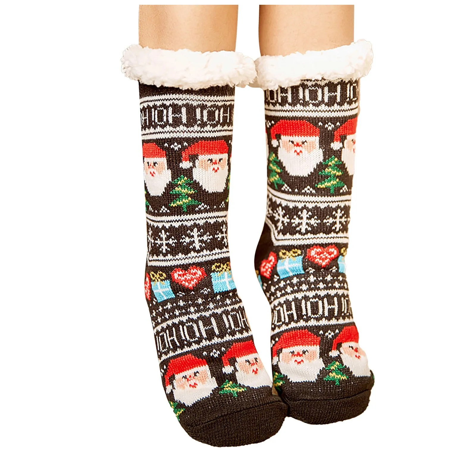 Рождественские пушистые тапочки носки женские зимние теплые плюшевые Нескользящие мягкие женские полосатые напольные пушистые носки Снеговик Санта-Клаус