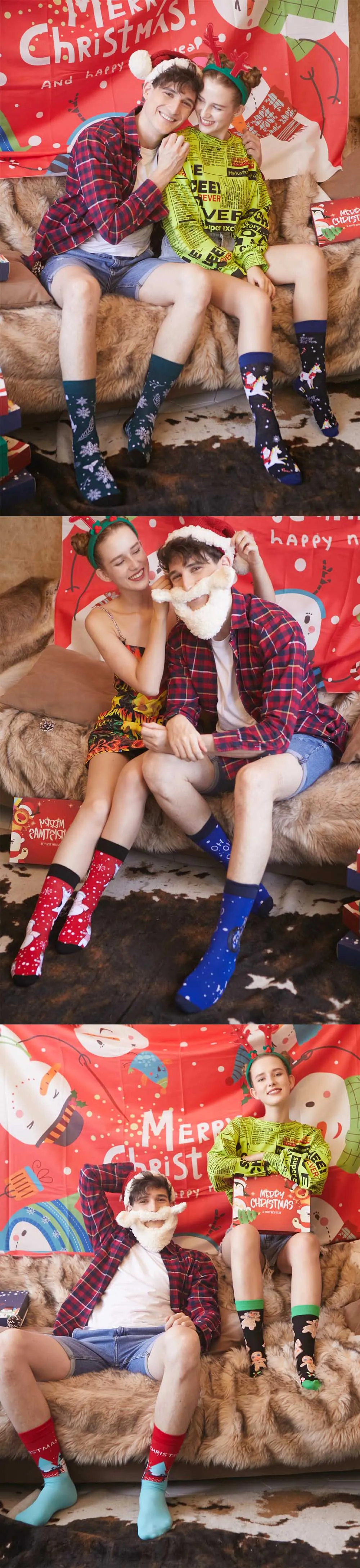 Рождественская елка с изображением снежного лося подарок хлопок счастливые мужские носки новинка 2021 осень зима Рождество женские носки забавный новый год Санта-Клаус