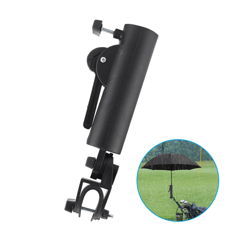 Высококачественный держатель зонта для гольф-карт, он очень прочный и долговечный. Легко установить на ручку тележки для гольфа.