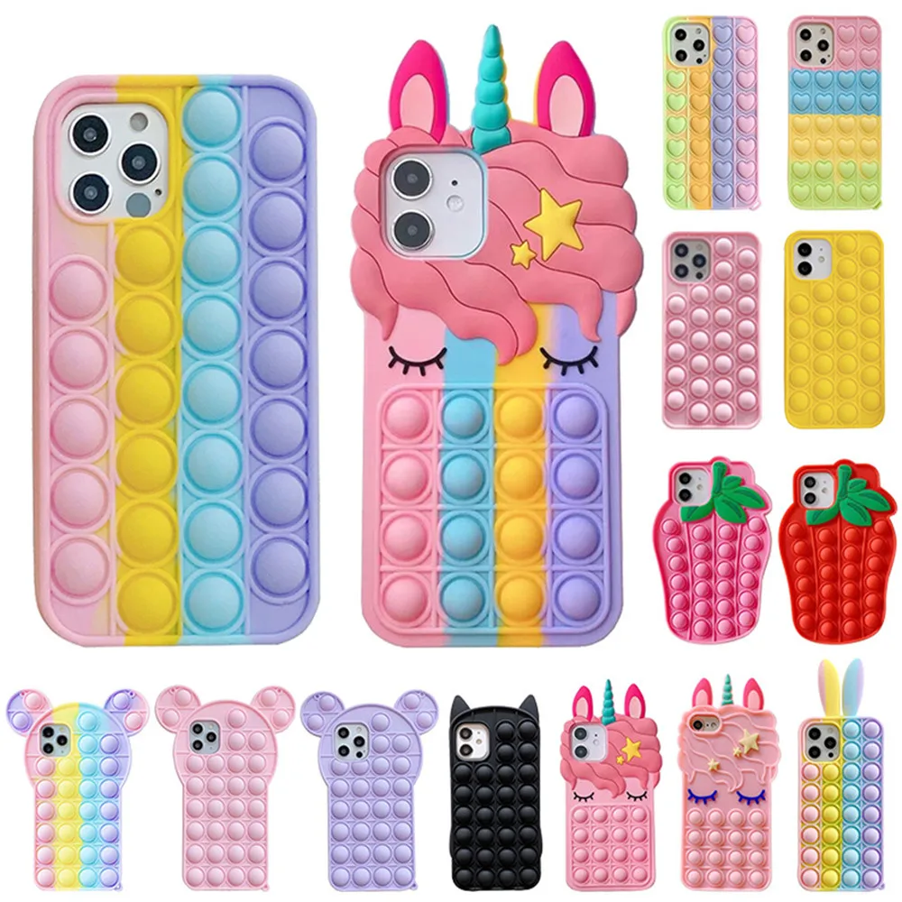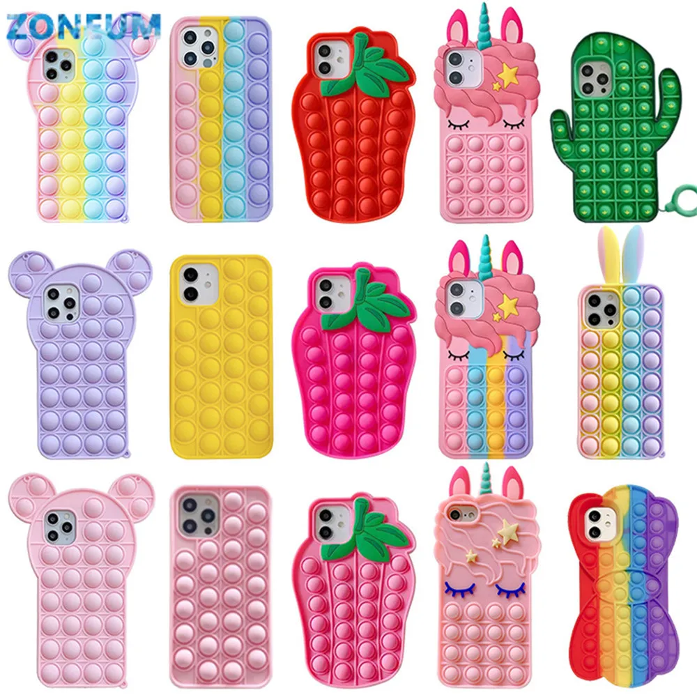 Чехлы для телефонов iPhone 11 12 Pro Max SE 2020 6 7 8 Plus XS Max XR, защитный силиконовый чехол, игрушки-антистресс, пузырьки, 25 вариантов