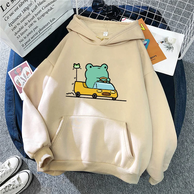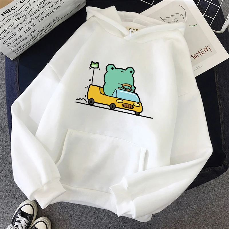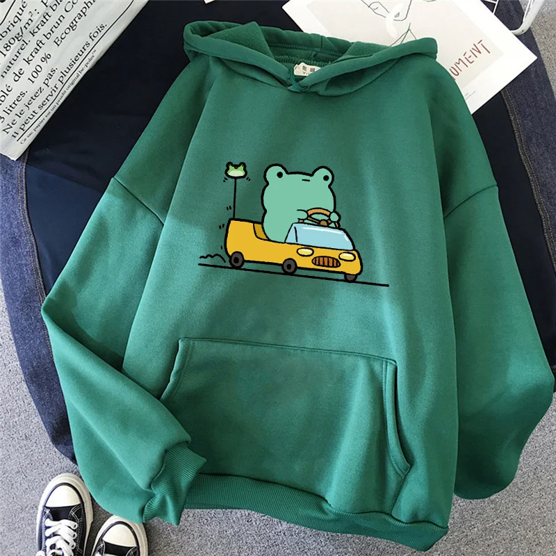 Женская толстовка с рисунком лягушки для вождения, модный Повседневный пуловер с принтом, топы в стиле Харадзюку, осенняя мужская Толстовка