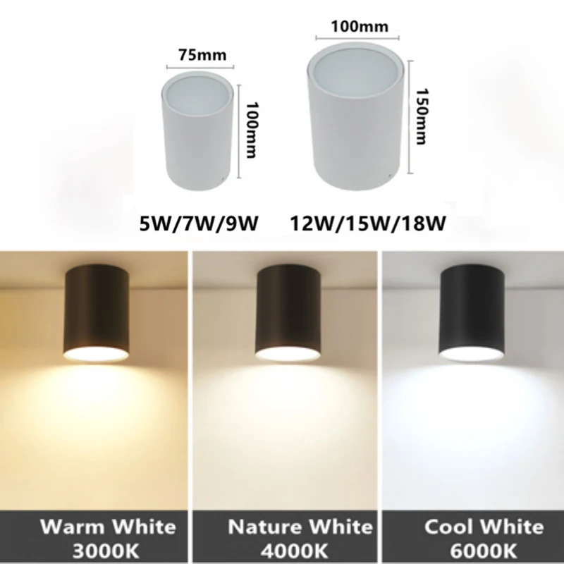 Приглушаемый потолочный светильник с поверхностным креплением, точечный светодиодный COB светильник для внутреннего освещения, 5 Вт, 7 Вт, 9 Вт, 12 Вт, 15 Вт, 18 Вт