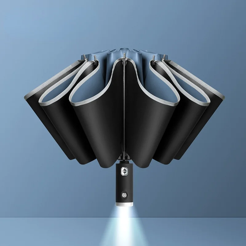 Полностью автоматический бизнес обратный зонтик 1. Легкий зонтик из алюминиевого сплава. Обновите десять костей, чтобы противостоять ветру, ржавчине и деформации2. Ночная Светоотражающая флуоресцентная полоска3. Обновите светодиодный светильник с ручкой4. Три раза серии, зонтик высокой плотности ткани, эффективный водонепроницаемый, дизайн маски для воды,Эффективная ветрозащитная поверхность зонта большого размера 105, кость заднего зонта, автоматическая кнопка Параметры спецификации Открытый диаметр: 105 см,Высота отверстия: 62 см,Ширина зонта: 6 см,Высота зонта: 32 см