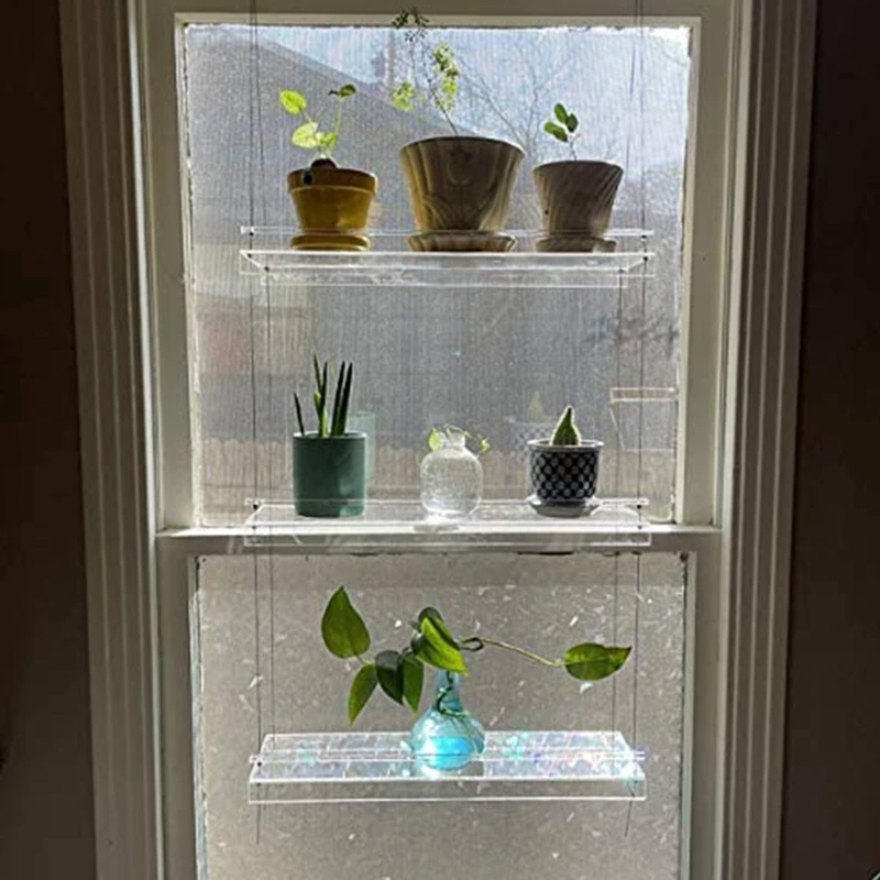 Акриловая полка для растений на окно, прозрачная подвесная настенна...