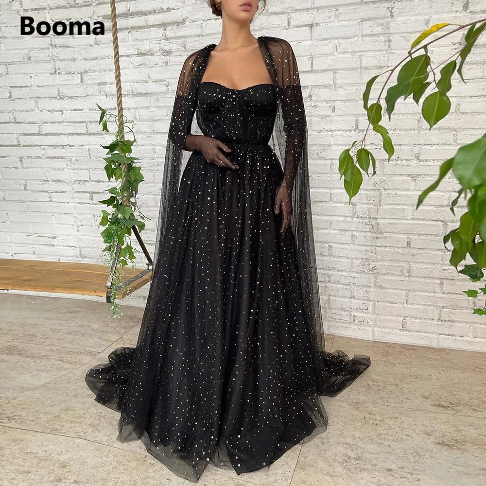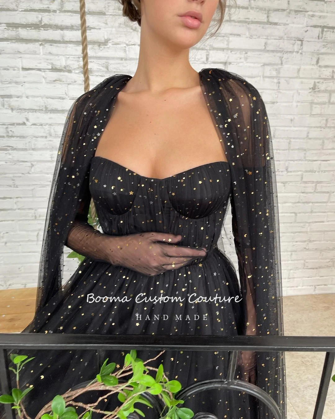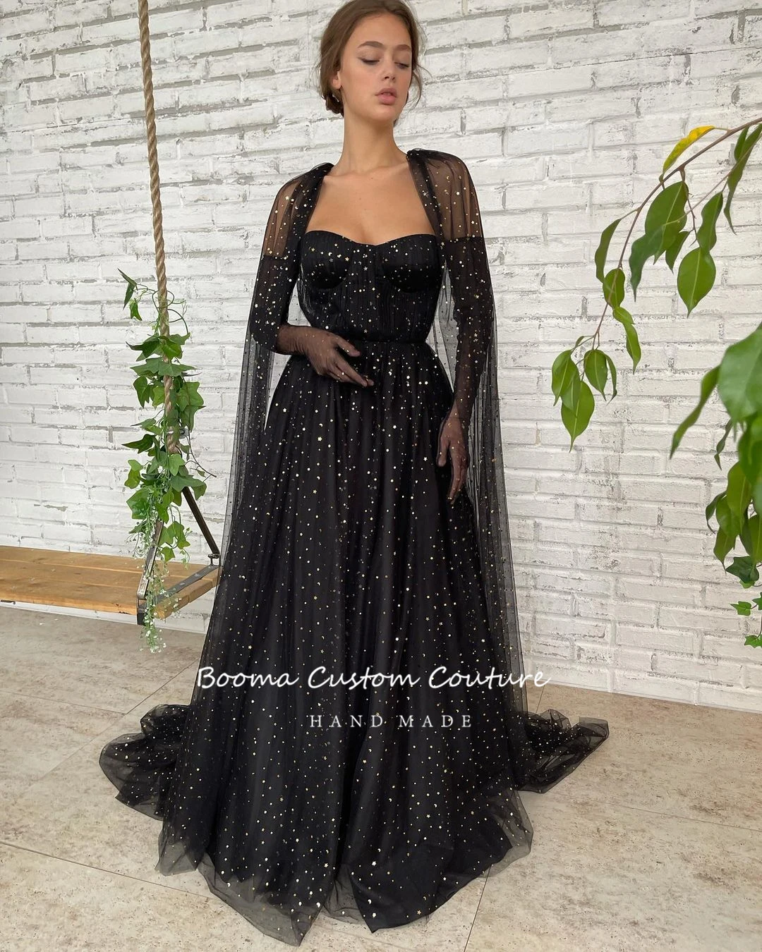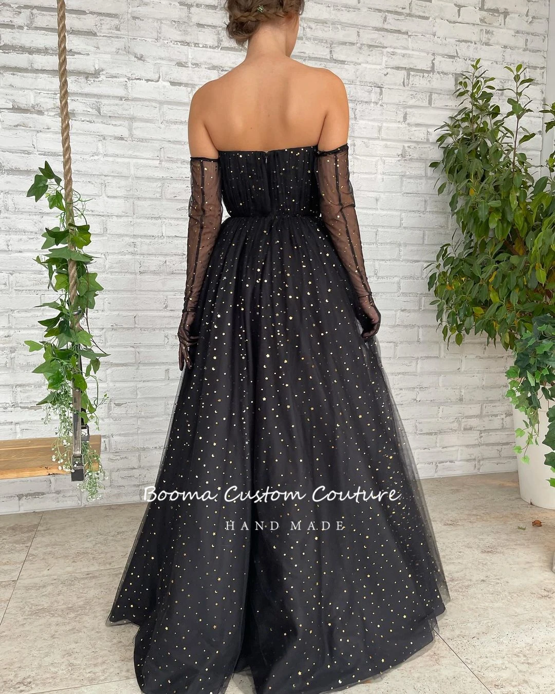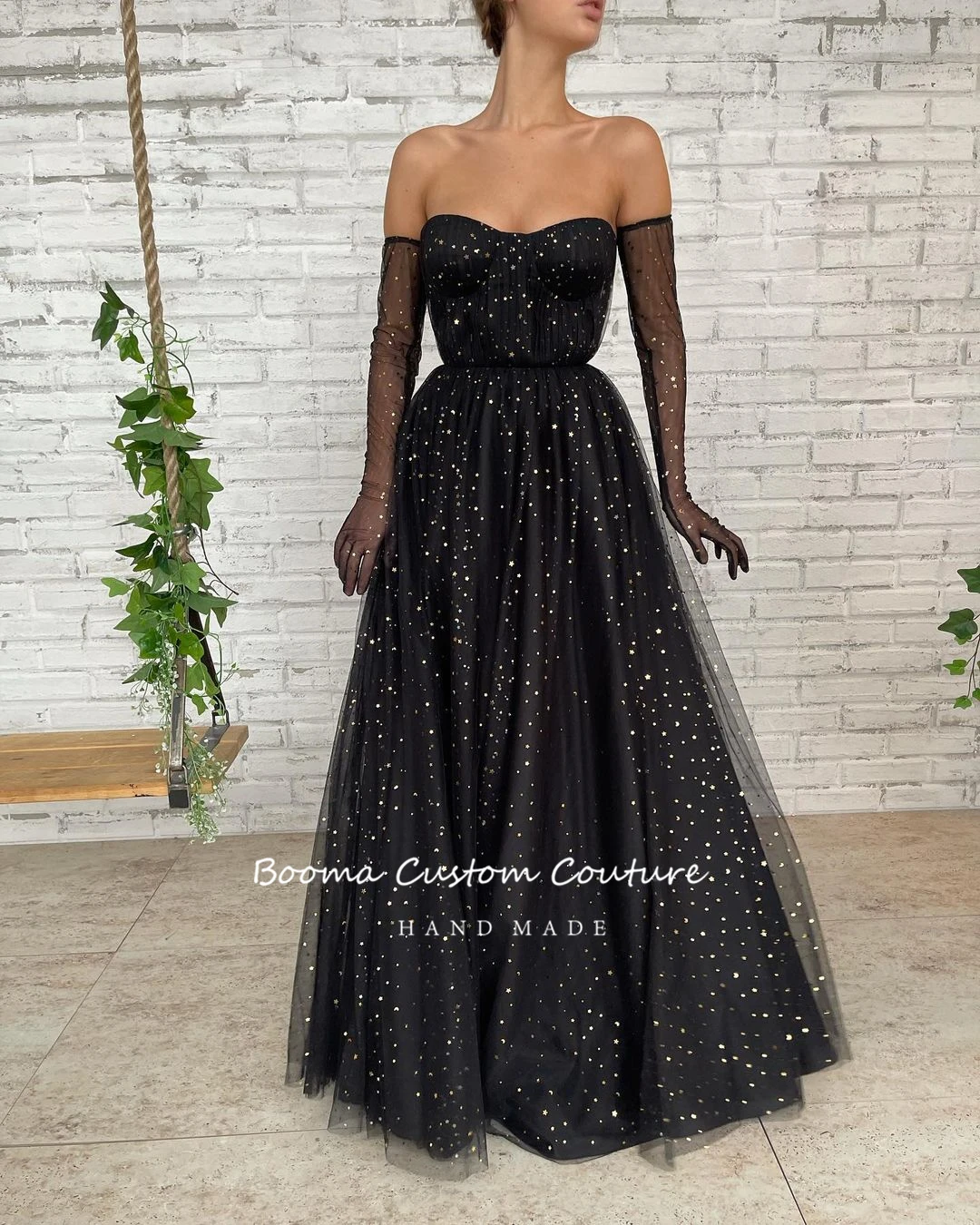 Женское вечернее платье-макси Booma, элегантное черное Тюлевое платье со звездным принтом, ТРАПЕЦИЕВИДНОЕ ПЛАТЬЕ без бретелек, длинное платье для выпускного вечера, 2021
