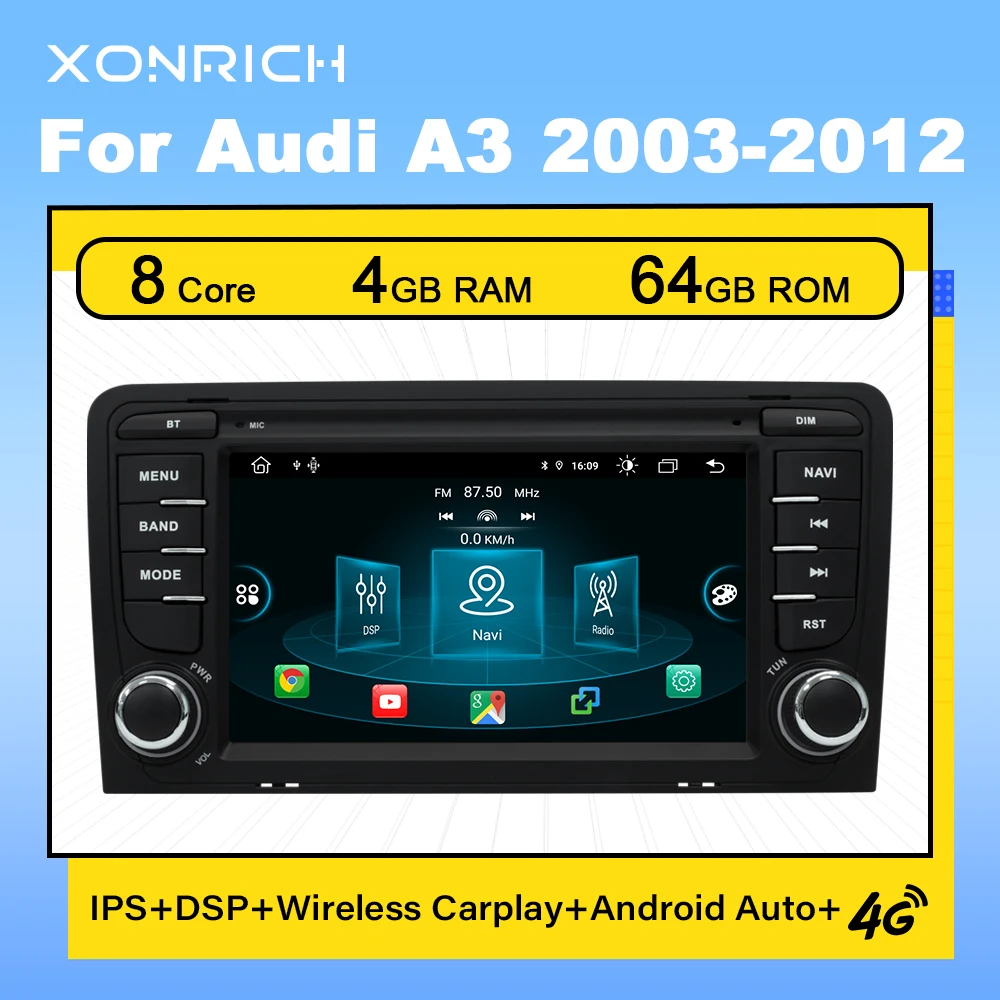 Автомобильный мультимедийный плеер Carplay Android для Audi A3 2003-2011 RS3 Sportback GPS Радио стерео DSP 4 Гб + 64 Гб 2Din DVD IPS
