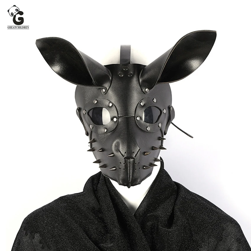Унисекс черная заклепочная Маска кролик из искусственной кожи в сти...