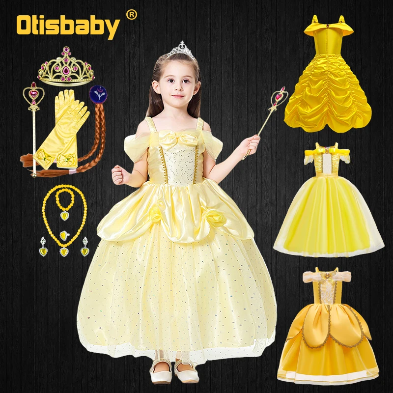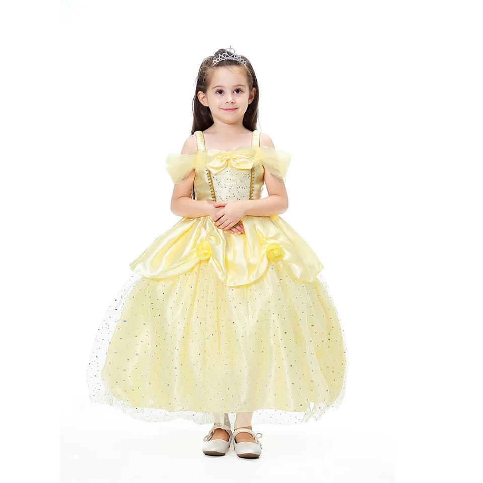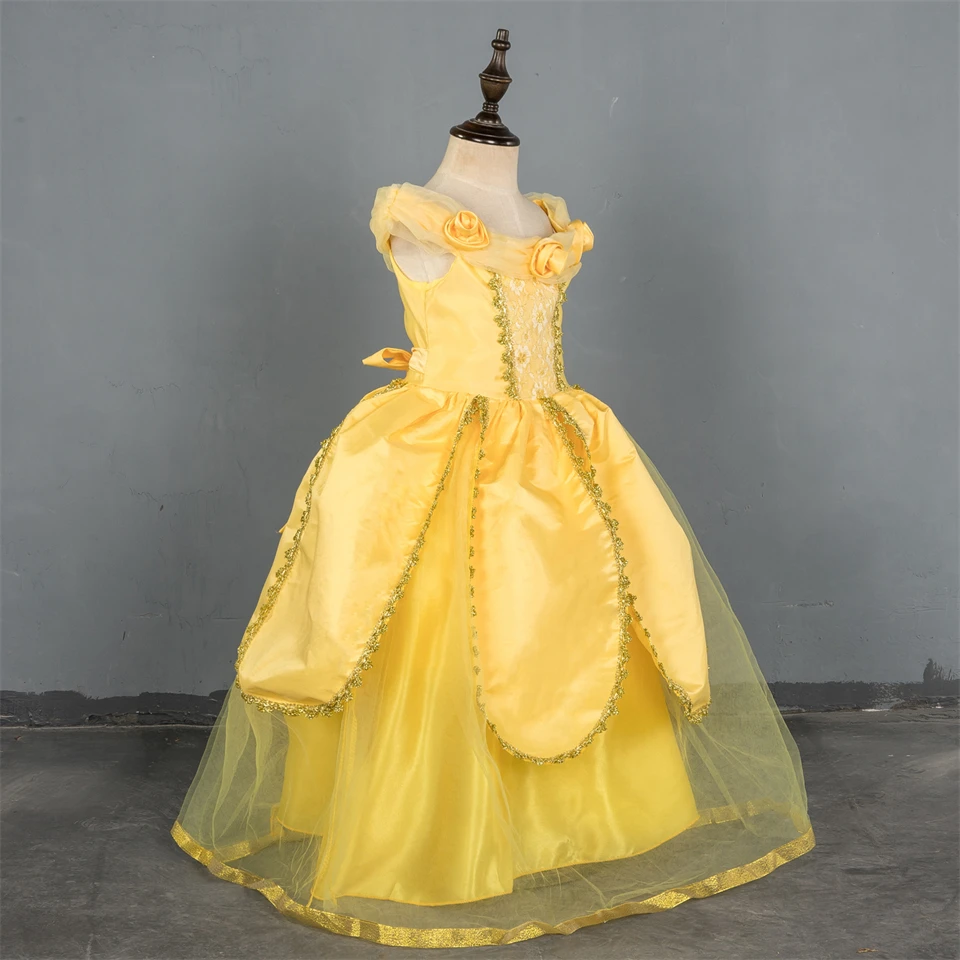 Красивое и чудовище платье для девочек Хэллоуин Рождественский костюм Дети Спящая красавица Белль принцесса день рождения Бальные платья
