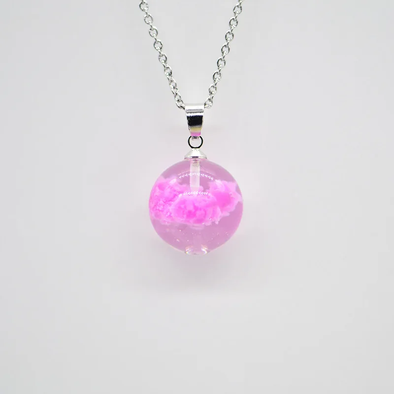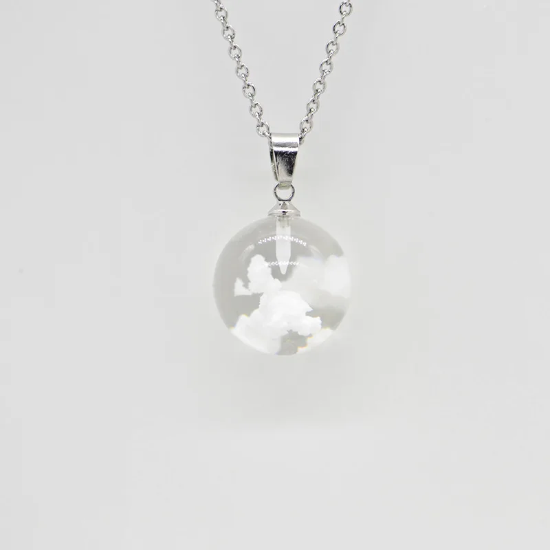 Колье из смолы с круглым шариком женское, серебристое ожерелье с цепочкой в виде голубого неба и белого облака, модные ювелирные украшения в подарок для девушки