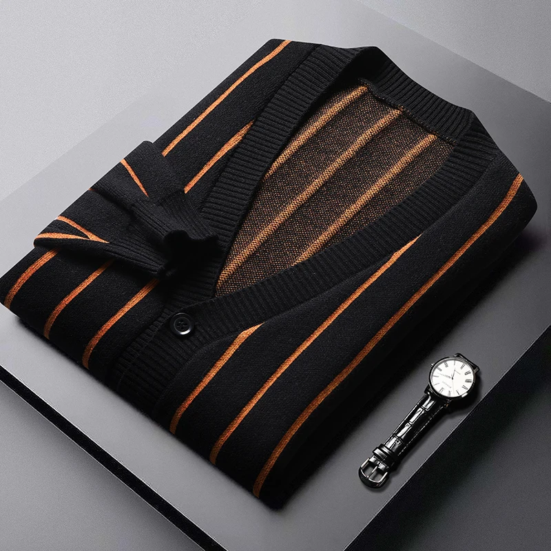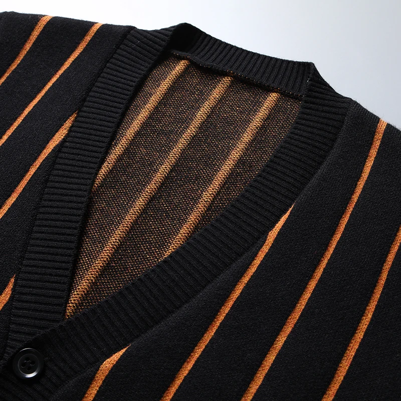 Мужской осенне-зимний полосатый свитер, теплый кардиган, повседневн...